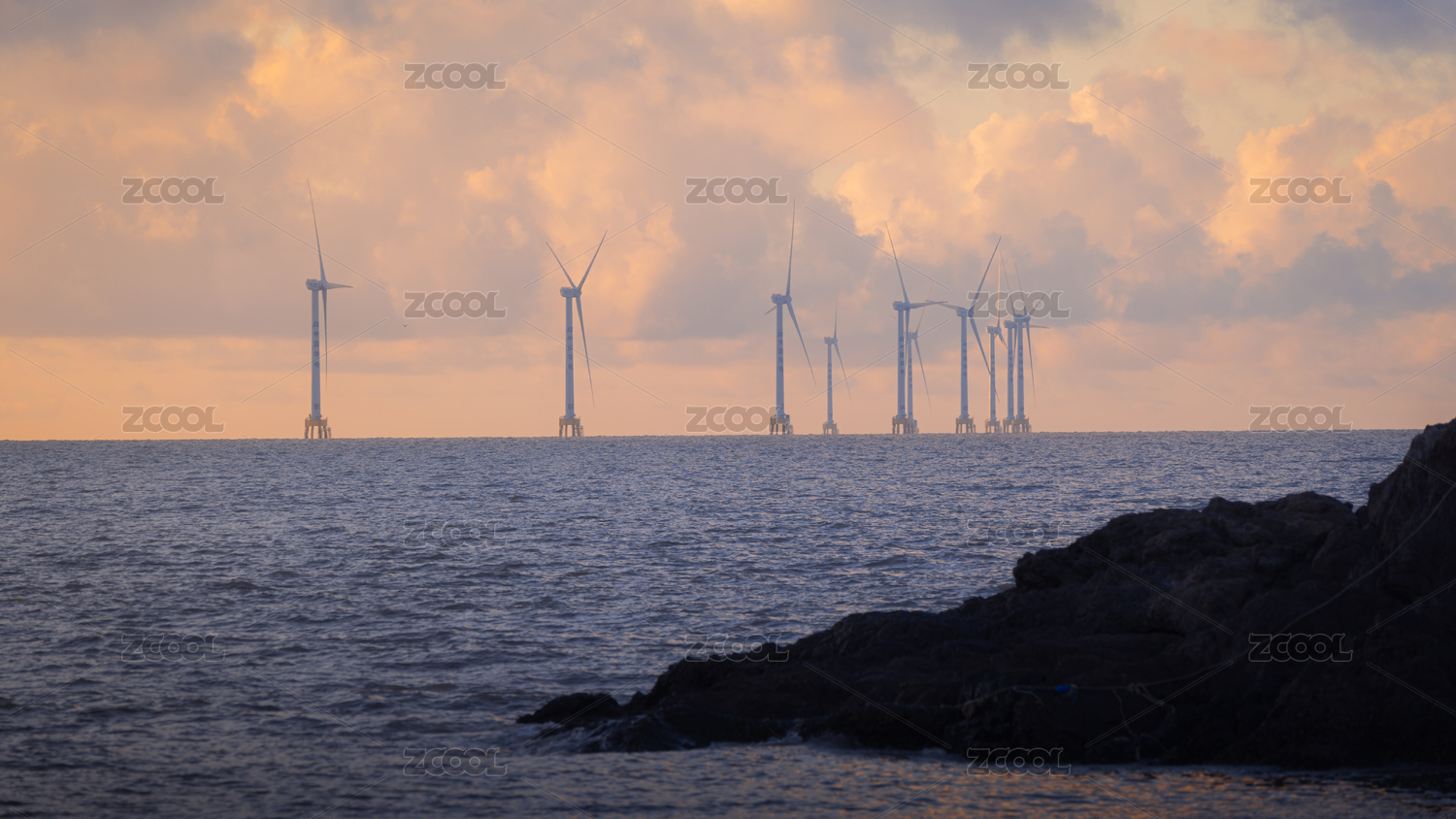 福建霞浦海尾角村镇海岛风力发电自然风光
