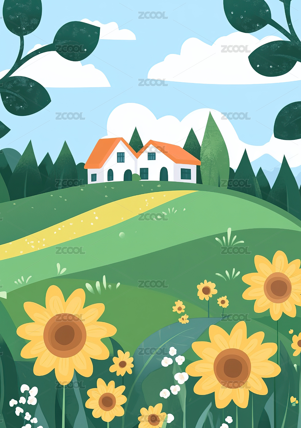 卡通乡村小房子插画