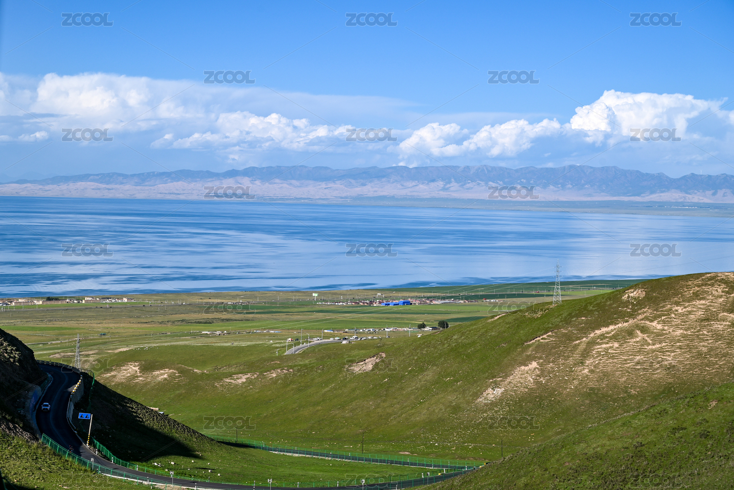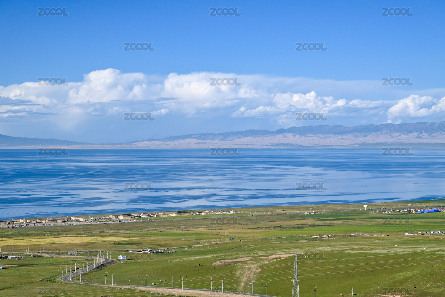 山川湖泊,青海湖,大西北,自然风光,蓝天,草地,青海