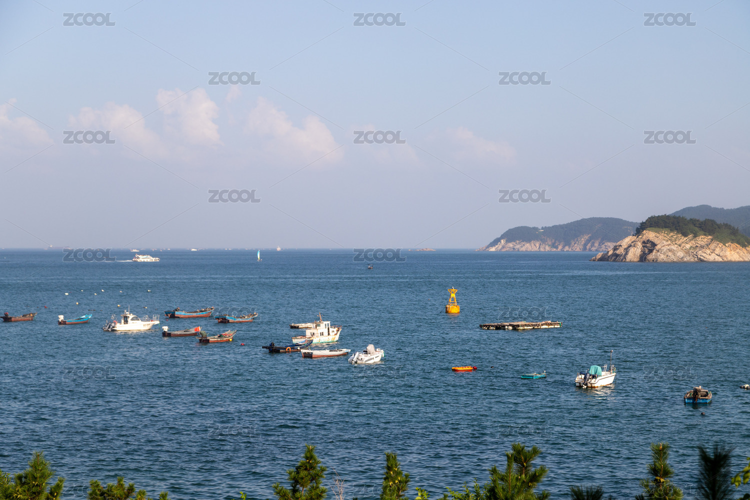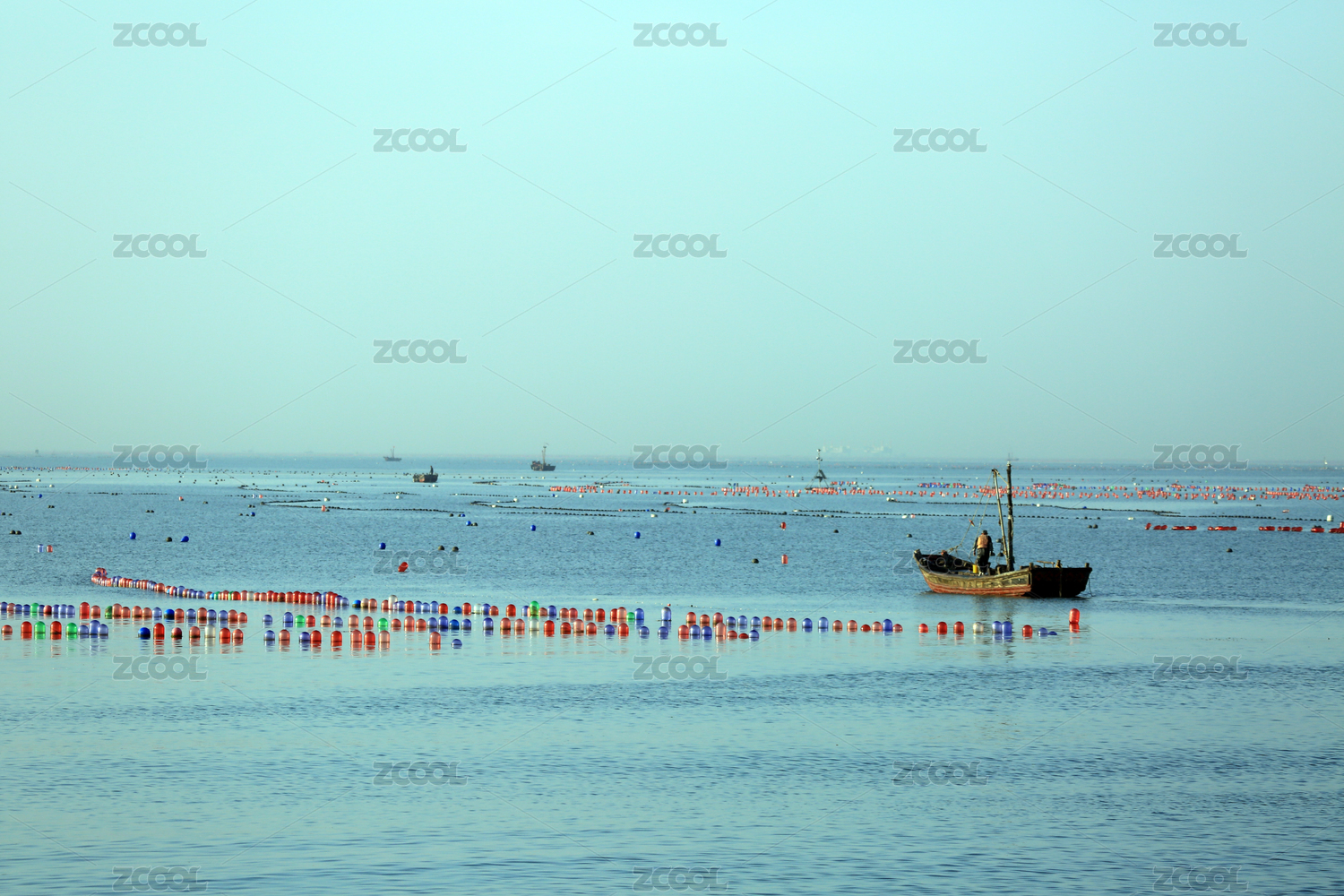 中国东海浙江舟山群岛枸杞岛渔场和渔船天际风光