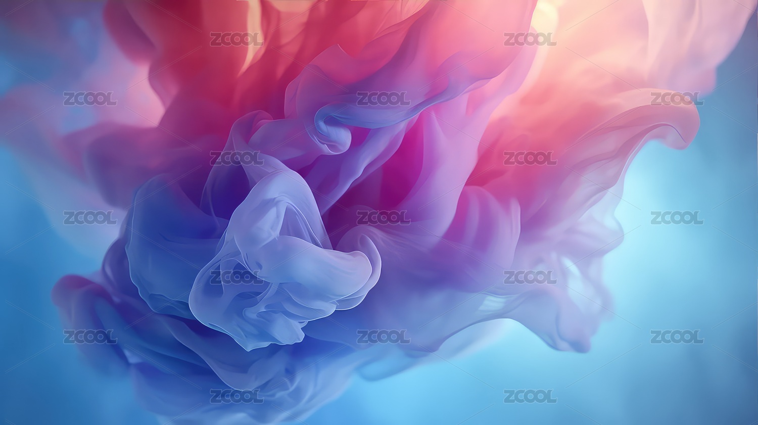 彩色烟雾在水中流动梦幻般充满艺术气息
