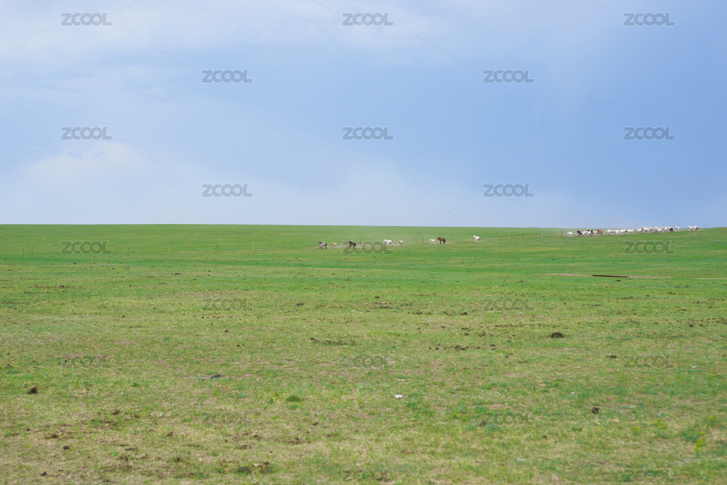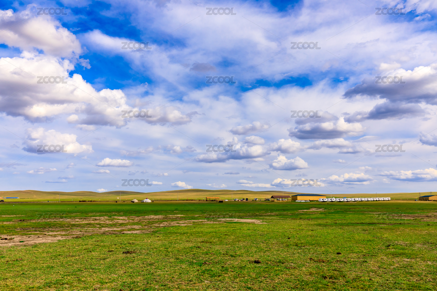 中国内蒙古草原绿草蓝天美景