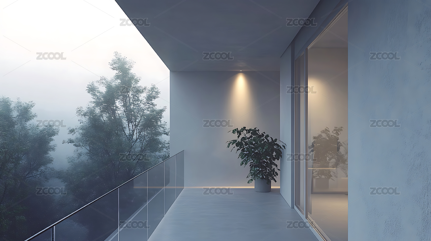 建筑,阳台,露台,窗户,住房,玻璃,远山,山,树,白色