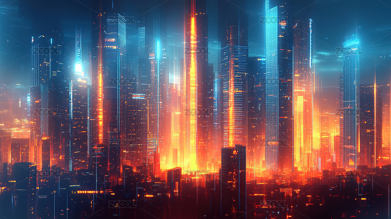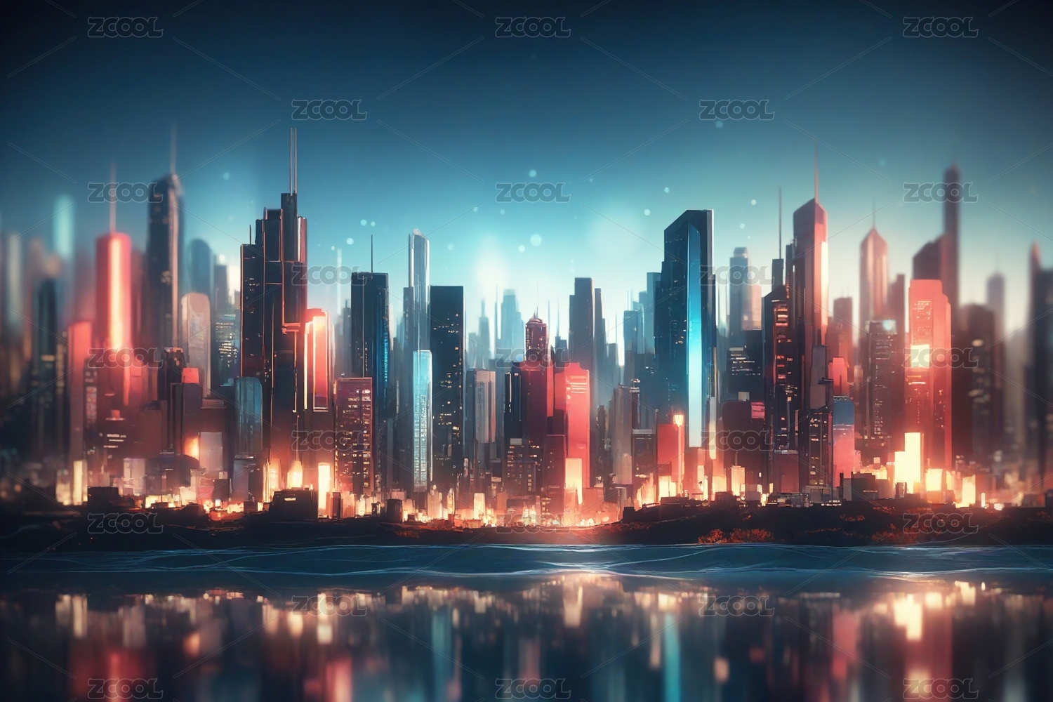 科技,建筑,未来,都市,天际线,摩天大楼,灯光,效果图,设计,艺术