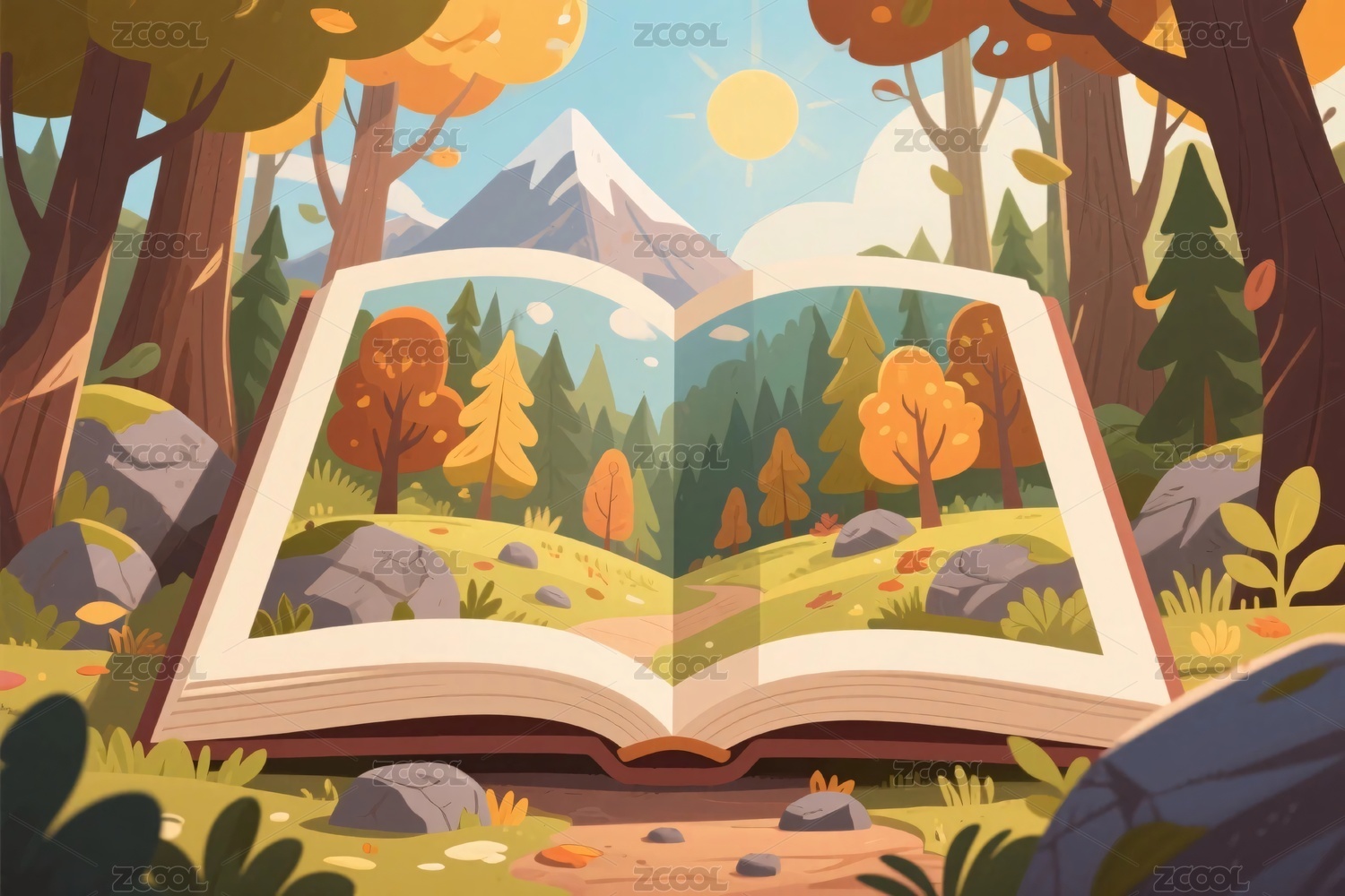 打开的书与秋林风景
