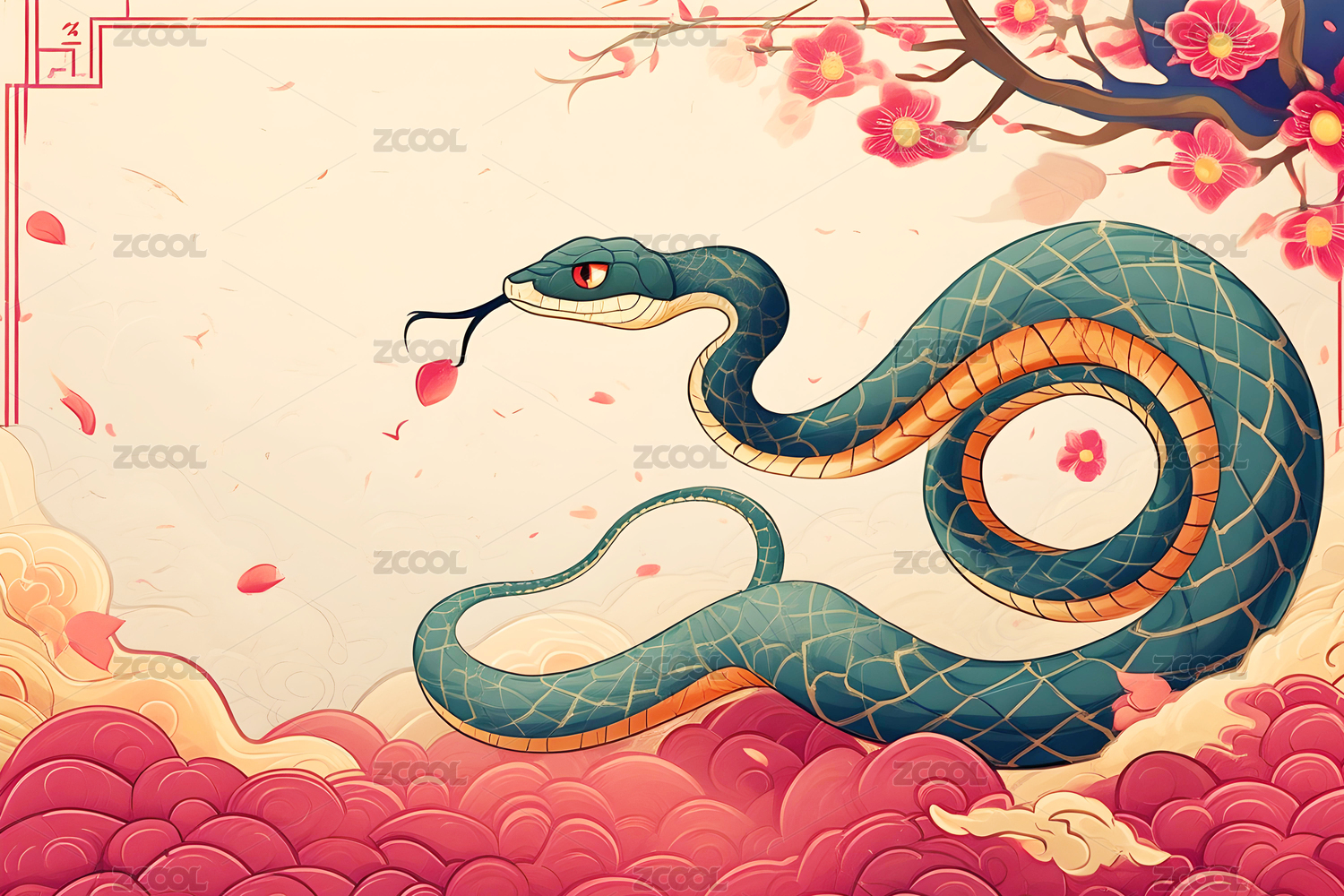 中国风国潮风蛇年生肖蛇卡通插画