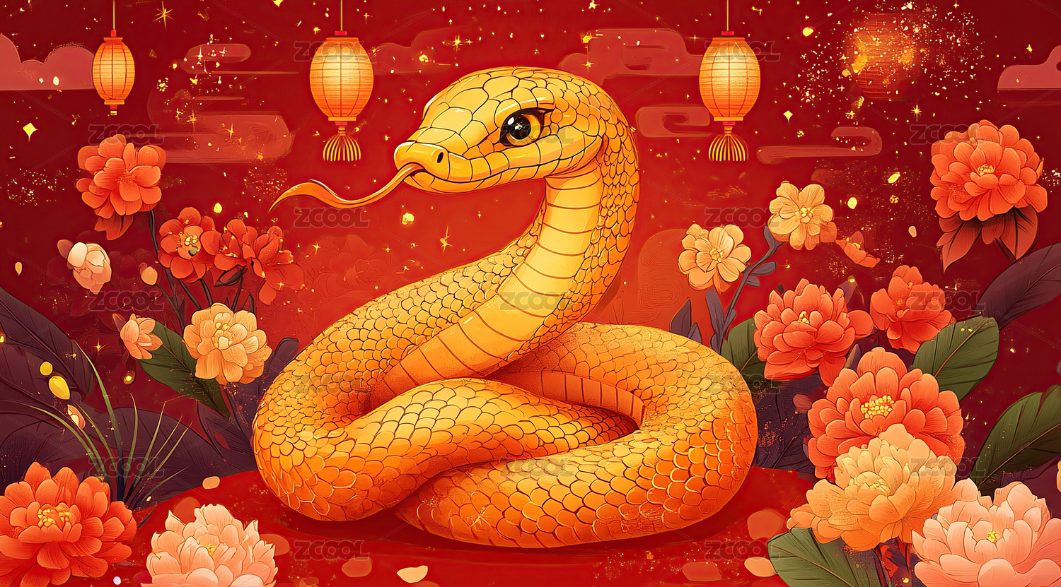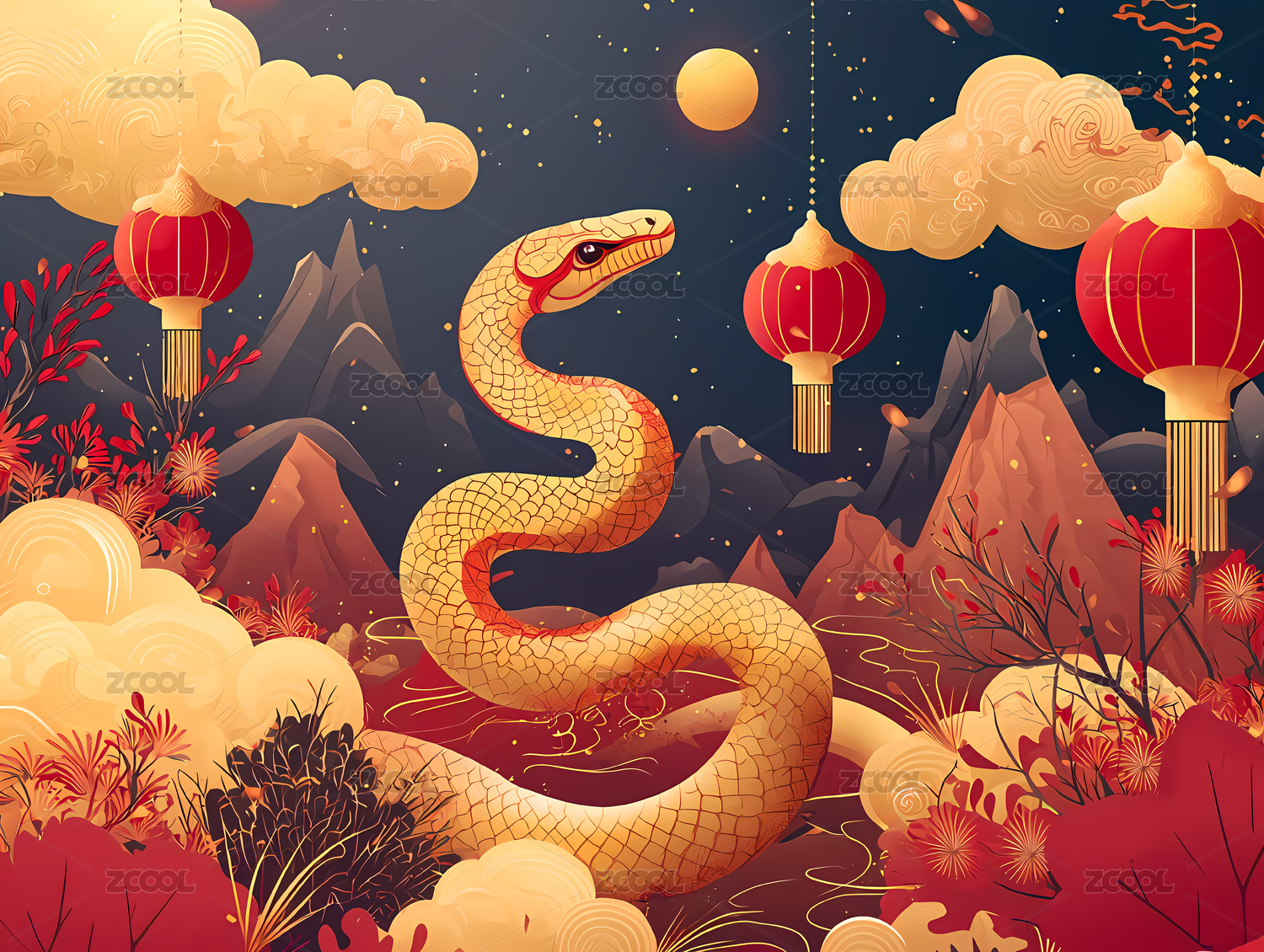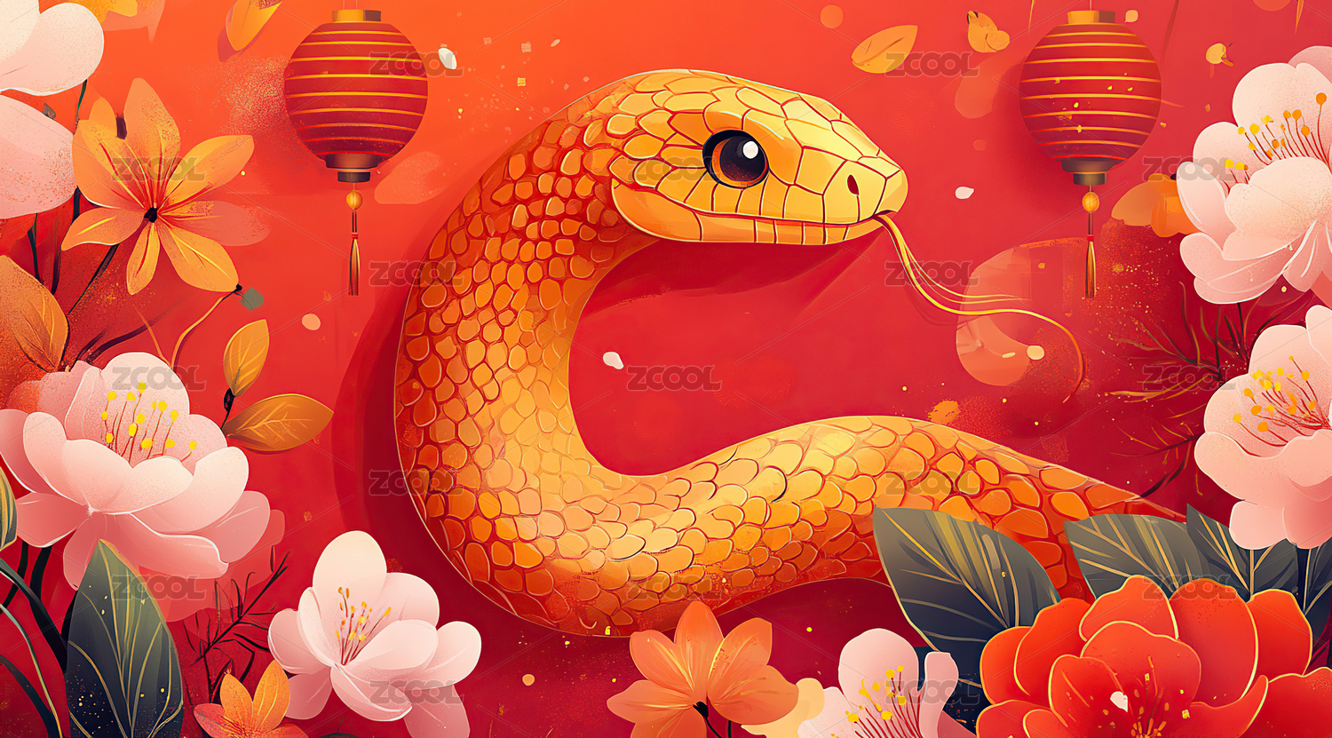 2025年蛇年庆典主题的春节插画
