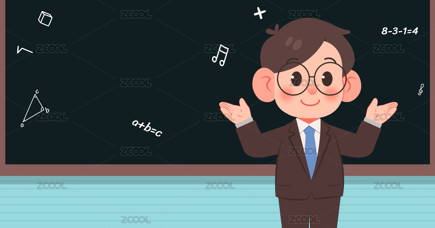 年轻的教师正在黑板上写数学题 课堂上讲课的老师插画