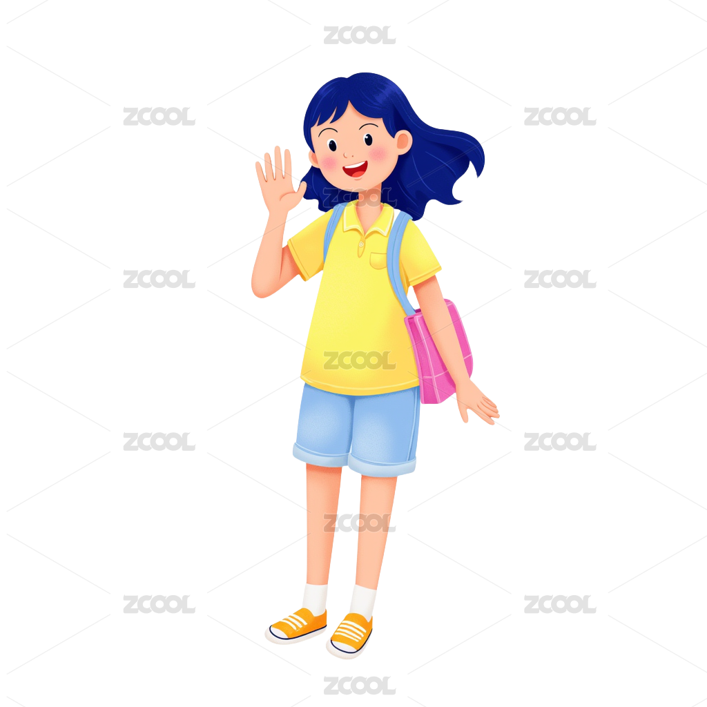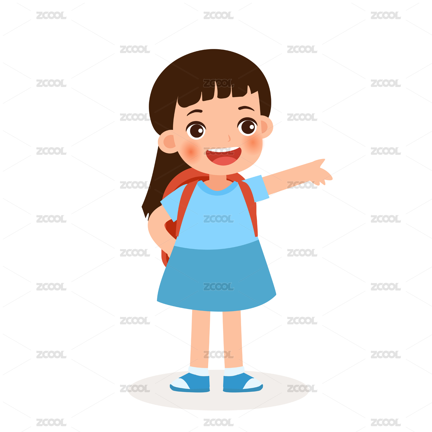 卡通开心快乐学习的马尾辫可爱女孩教育插画