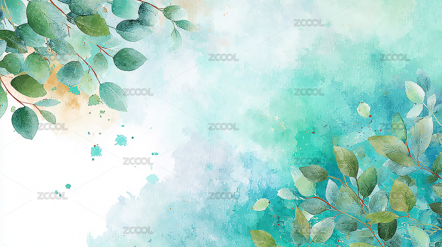 绿色系护眼清新抽象简约卡通水粉晕染背景