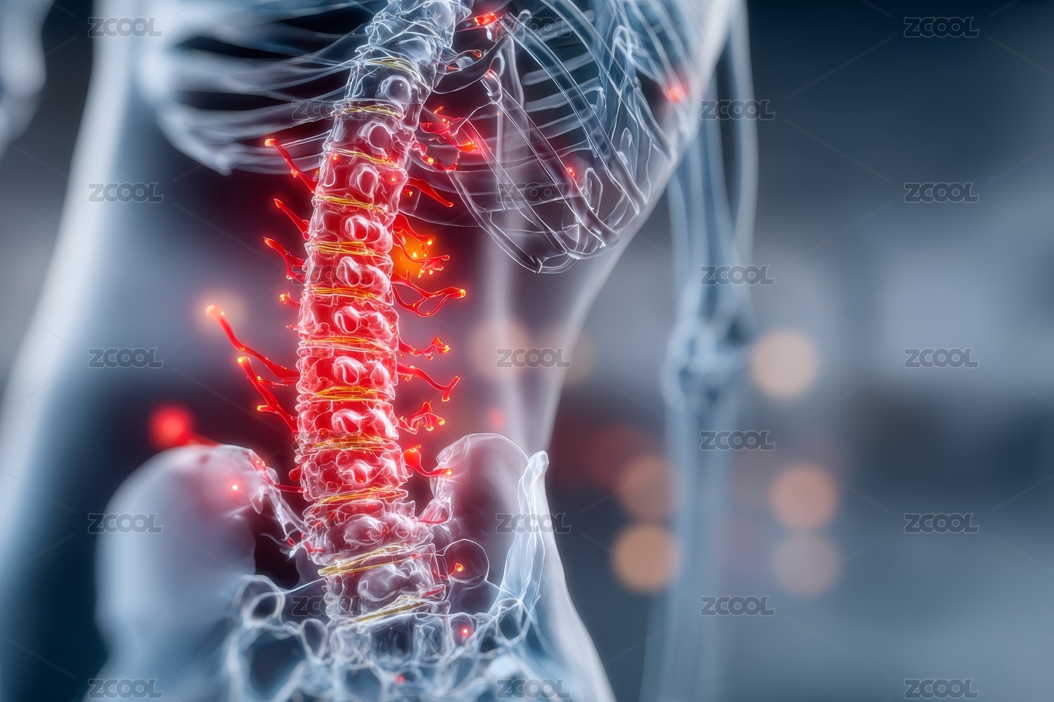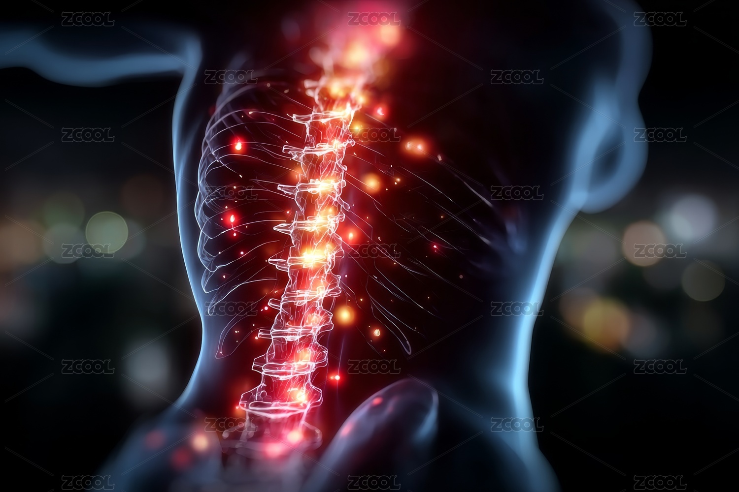 人体骨骼结构艺术渲染,脊柱护理康复概念