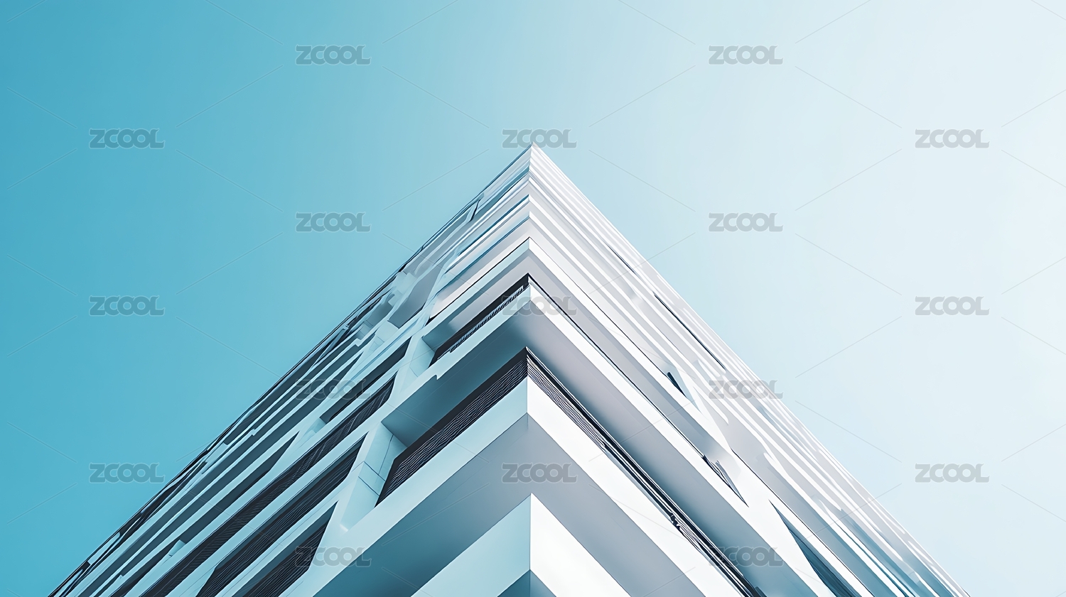 清新,未来,现代,建筑,仰视,天空,都市,极简,蓝色,摩天大楼