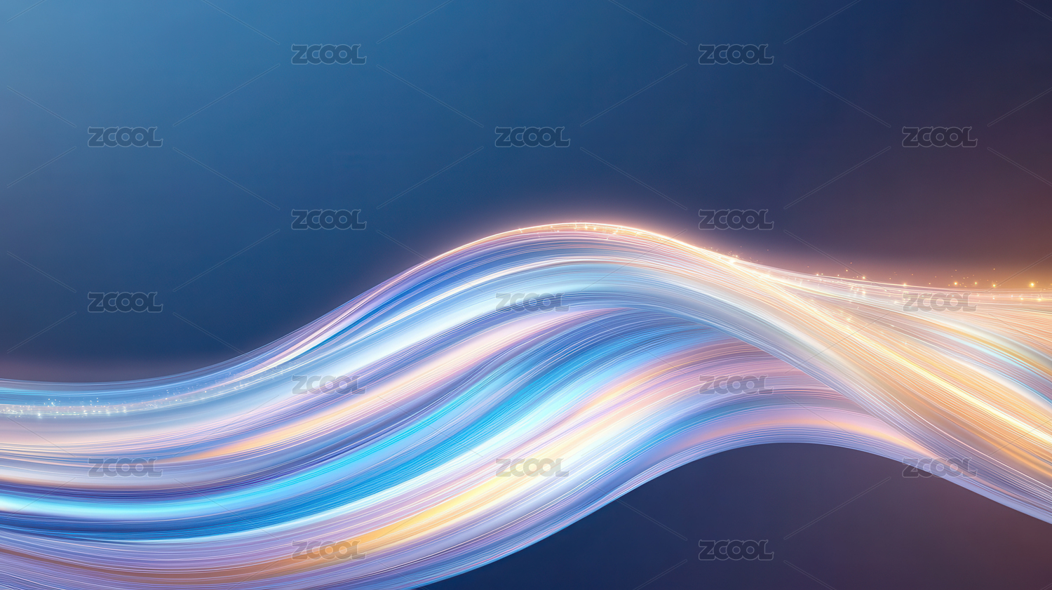 轻柔的蓝色背景上流光溢彩的线条曲线交织