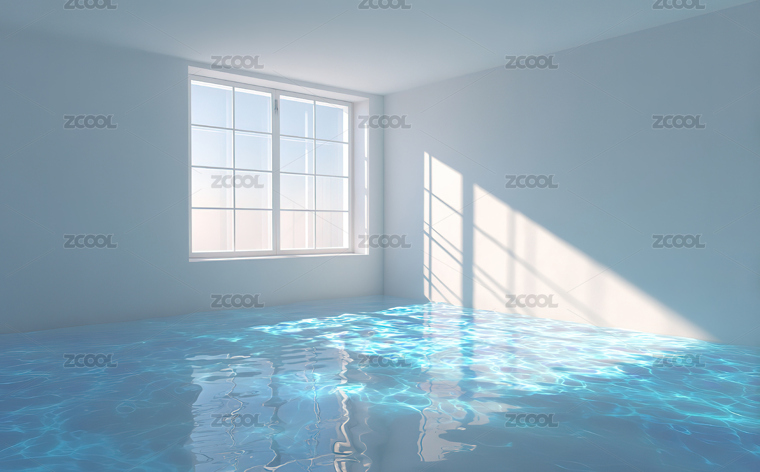 空房间与水面3D渲染