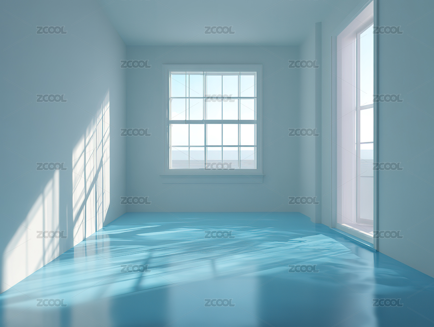 明亮空旷的蓝色房间