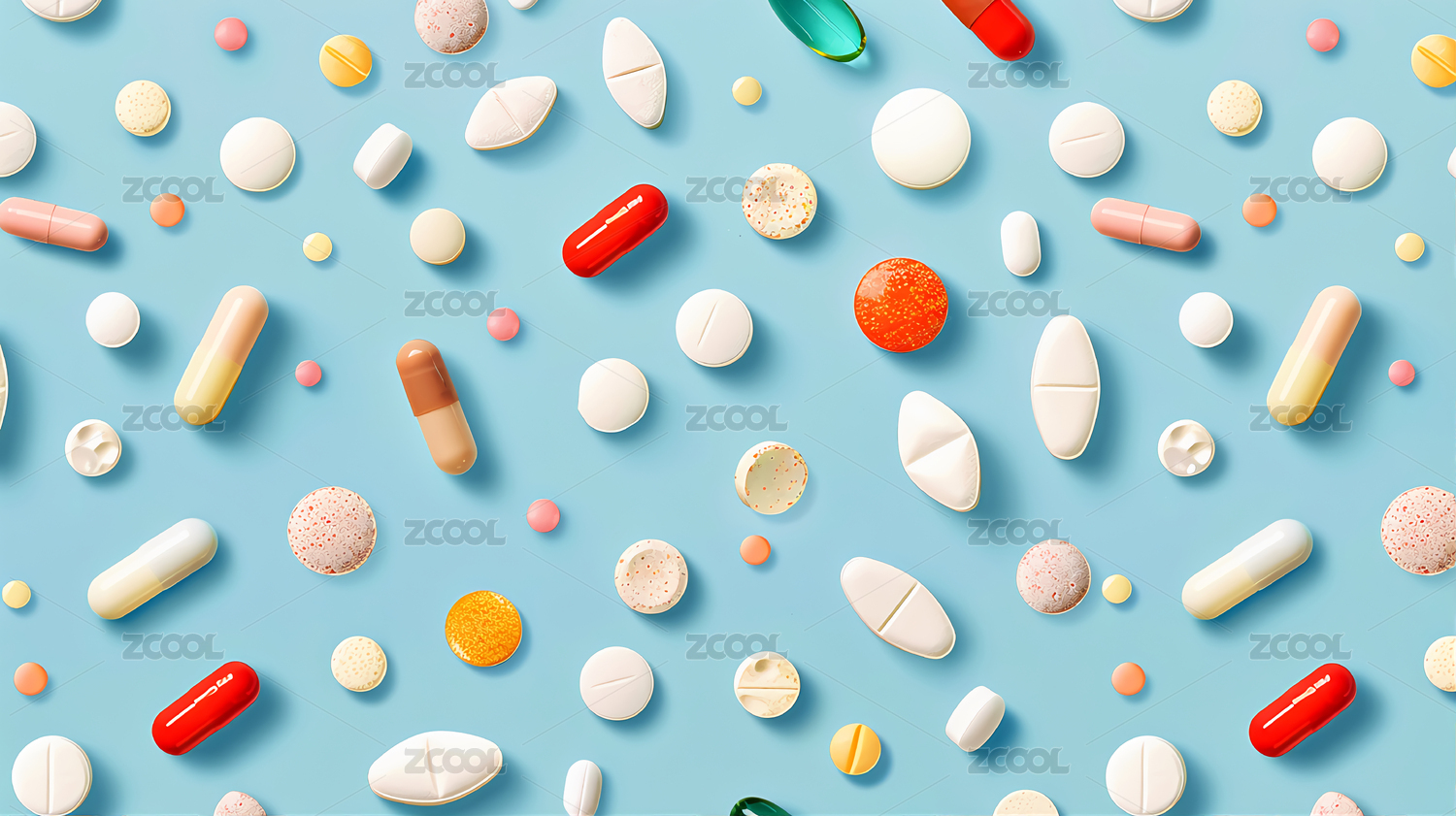 胶囊药片药品药瓶漂浮展示,三维简约背景