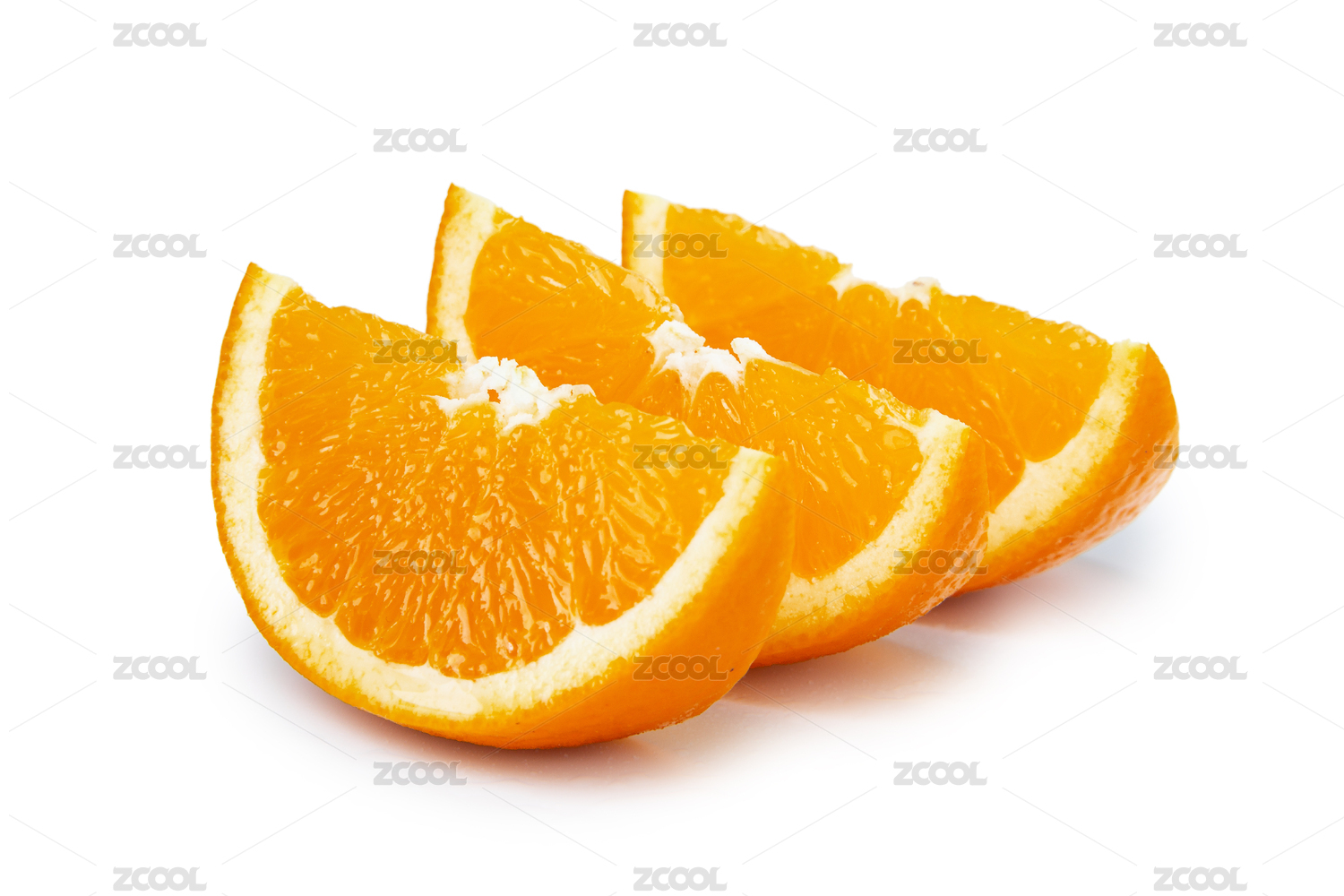 夏橙切开三块果肉排列白底