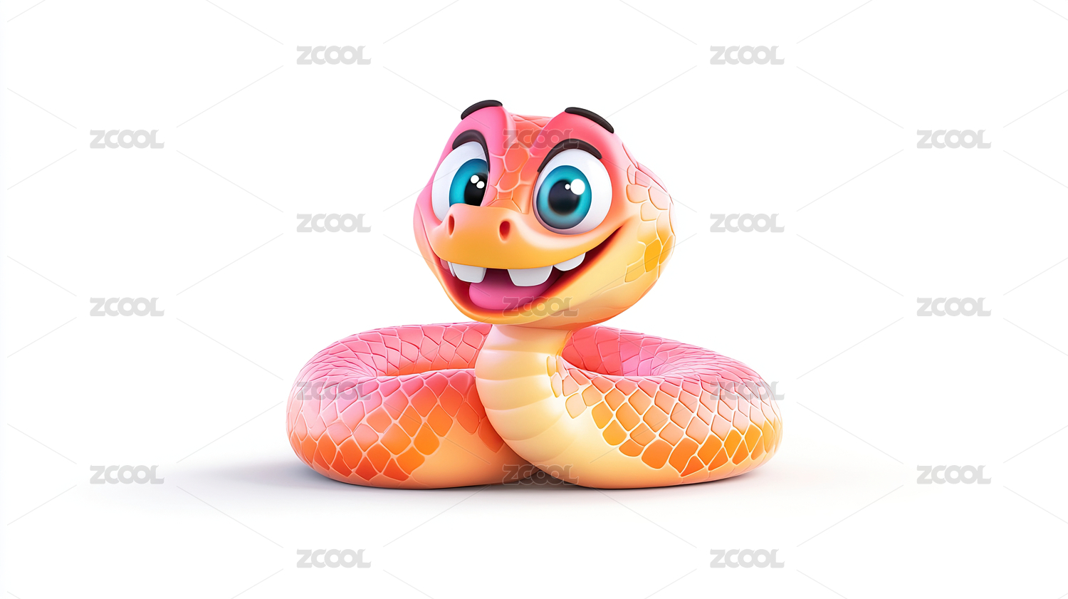 可爱的3D癸巳年蛇年小蛇卡通插画