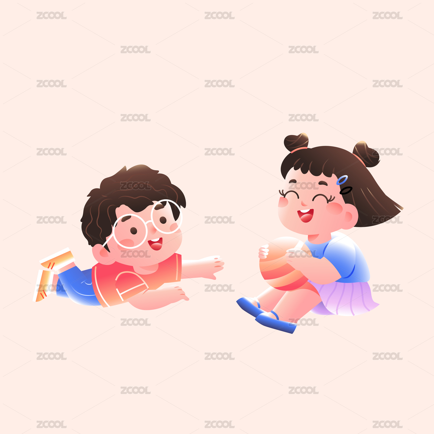 两个微笑的卡通男孩