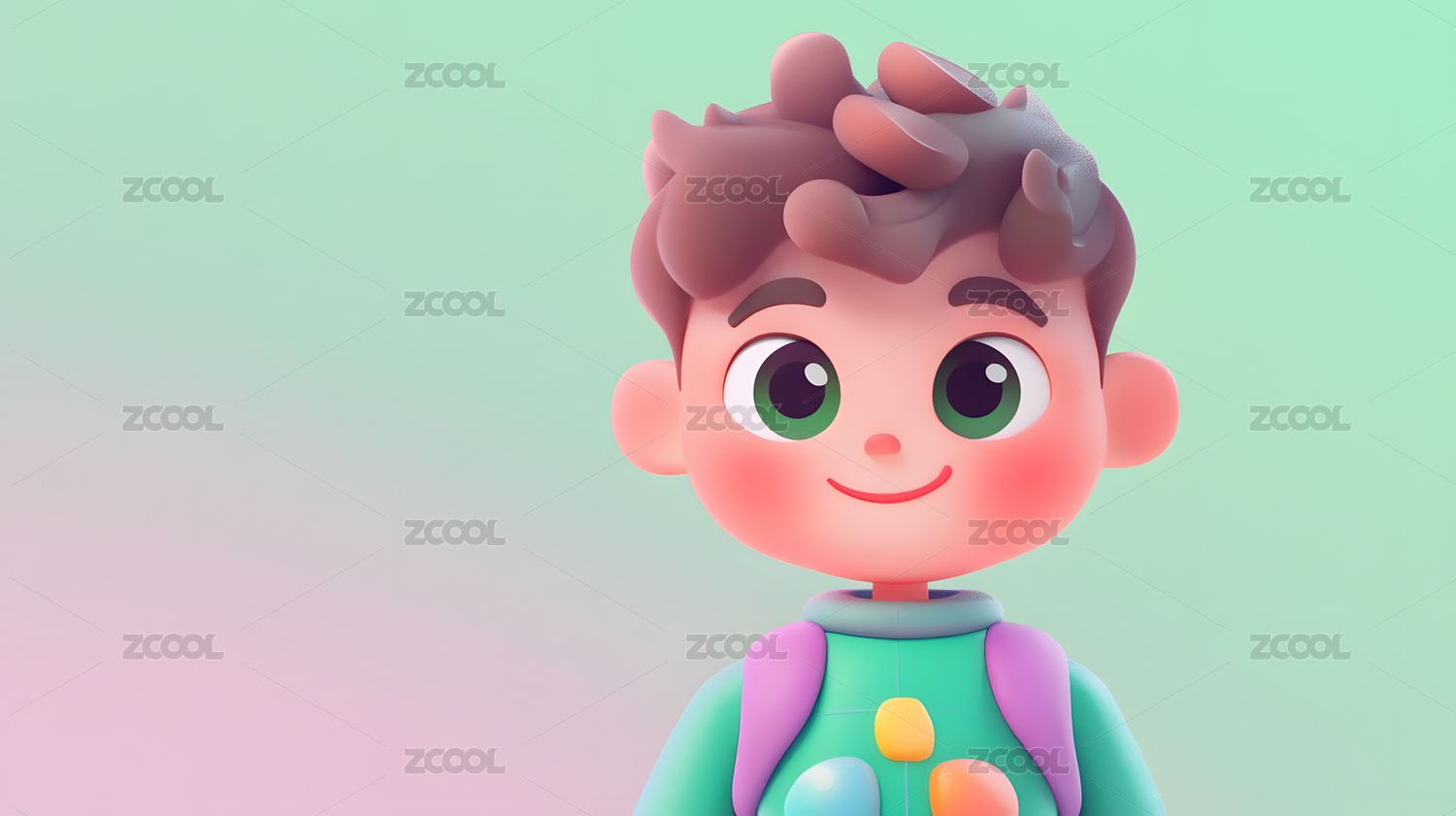 穿绿色毛衣的可爱Q版小男孩3D卡通人物