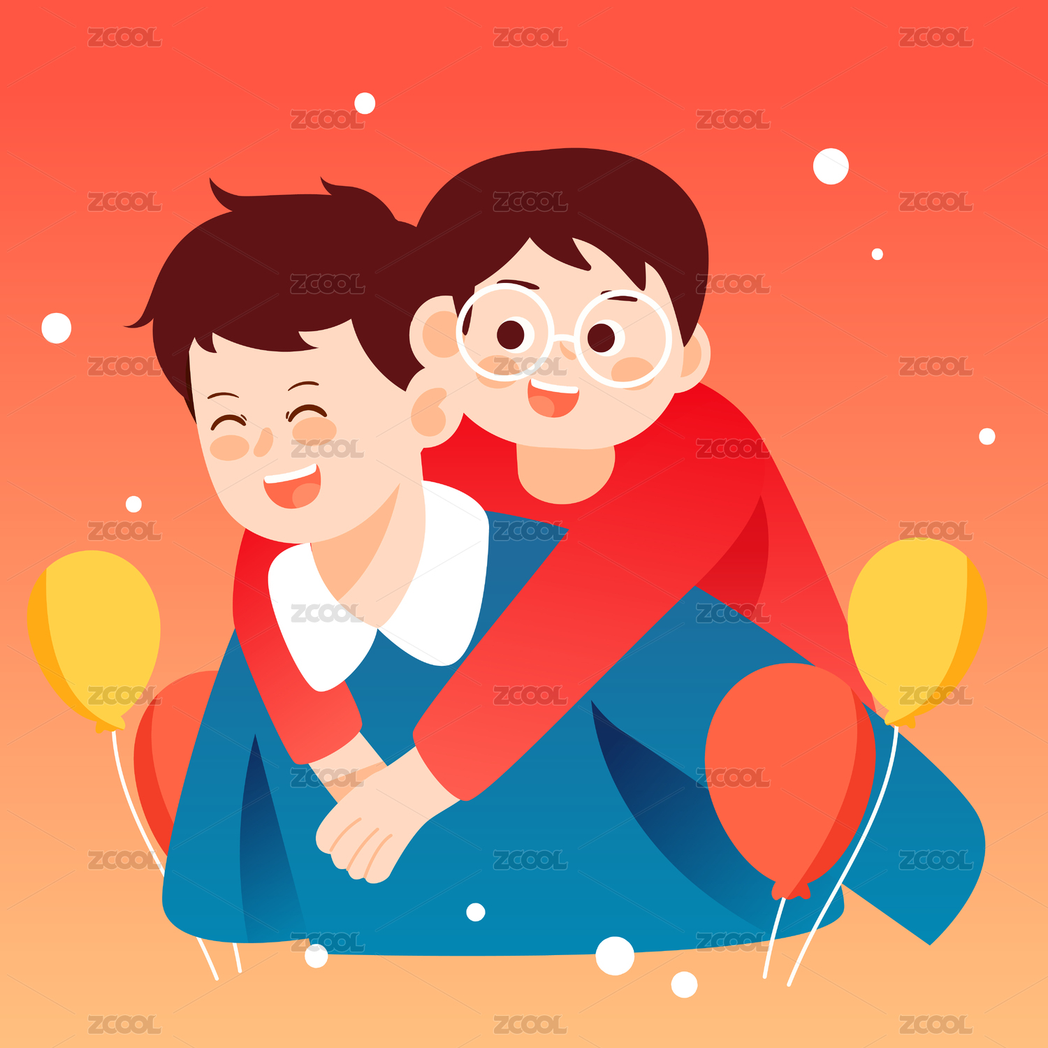 红色,背景,设计,微笑,友谊,可爱,卡通,黄色,插画,纯真