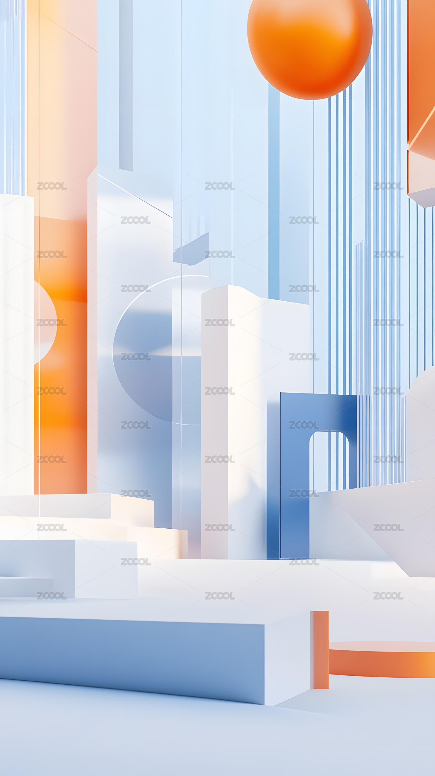 球体,现代,抽象,几何,艺术,简约,形状,创意,蓝色,橙色