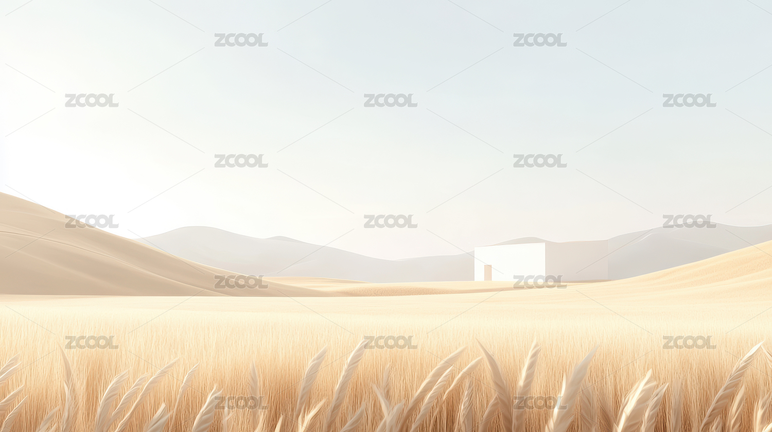 金色麦田中的白色建筑