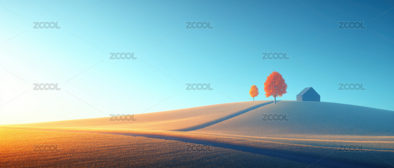 金色麦田上的小屋