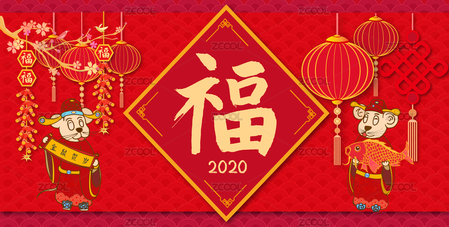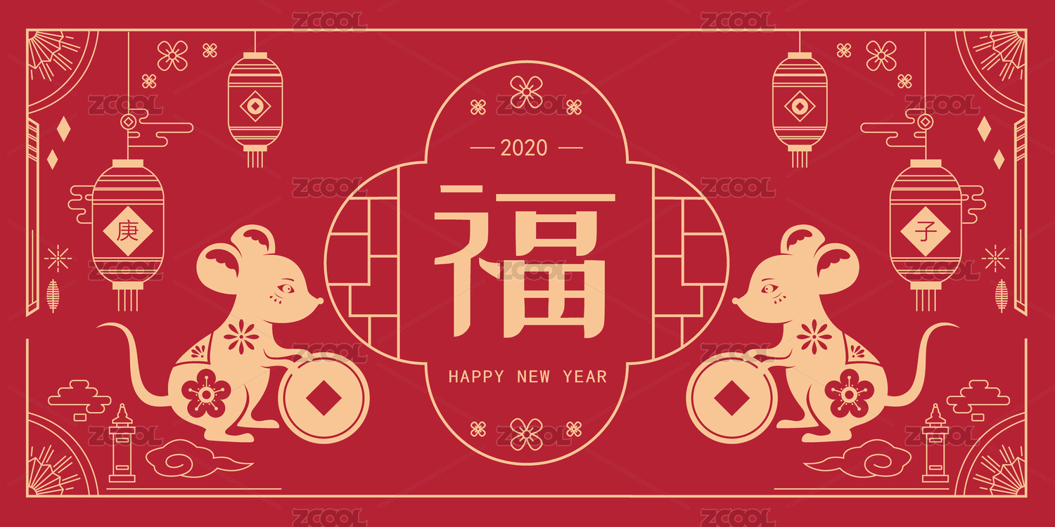 新年2020年鼠年春节,瑞鼠迎春海报插画背景