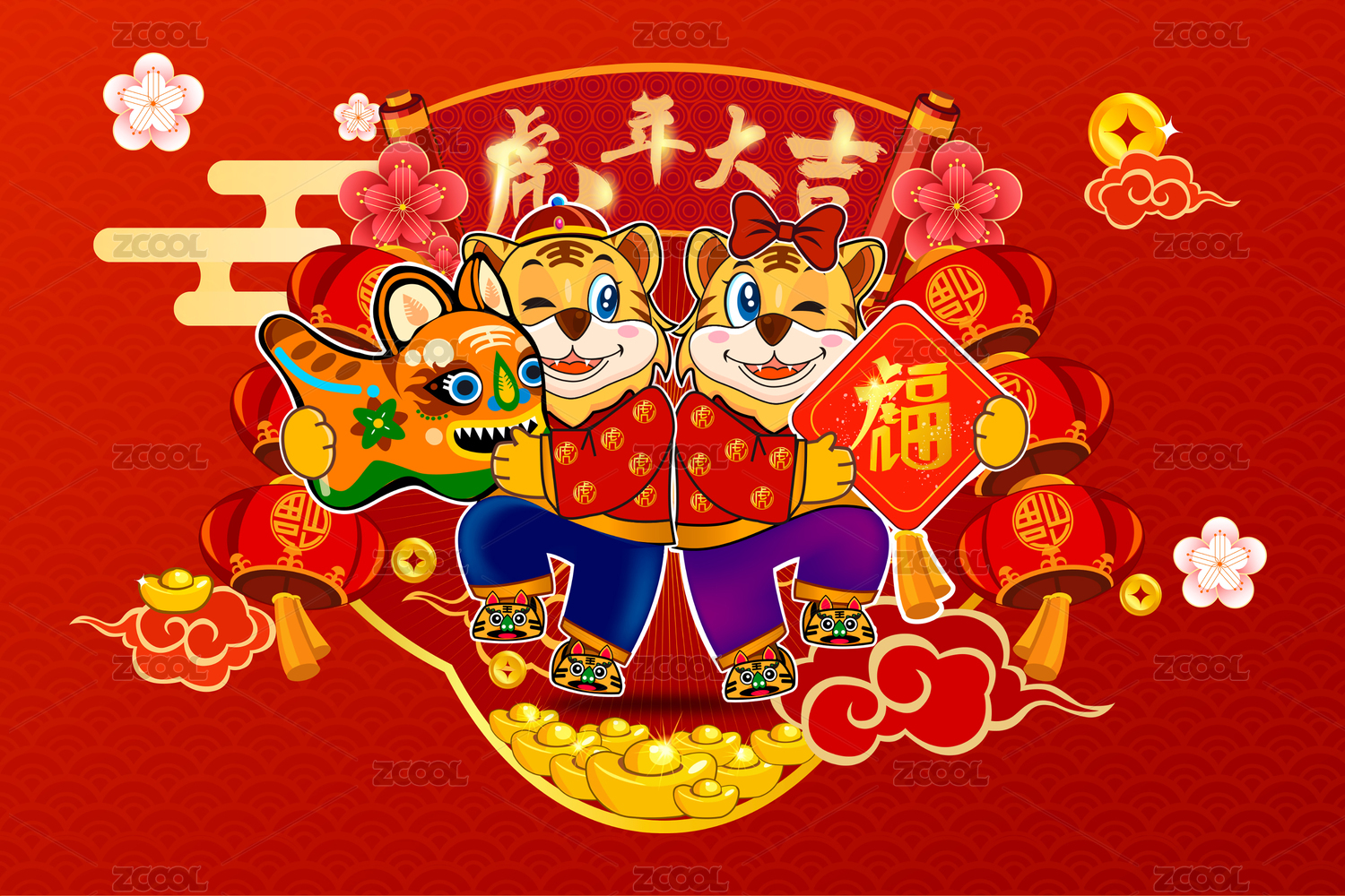 HEVCSF2022,新年,过年,虎年,中国风,唐装,古装,红色,ip,形象