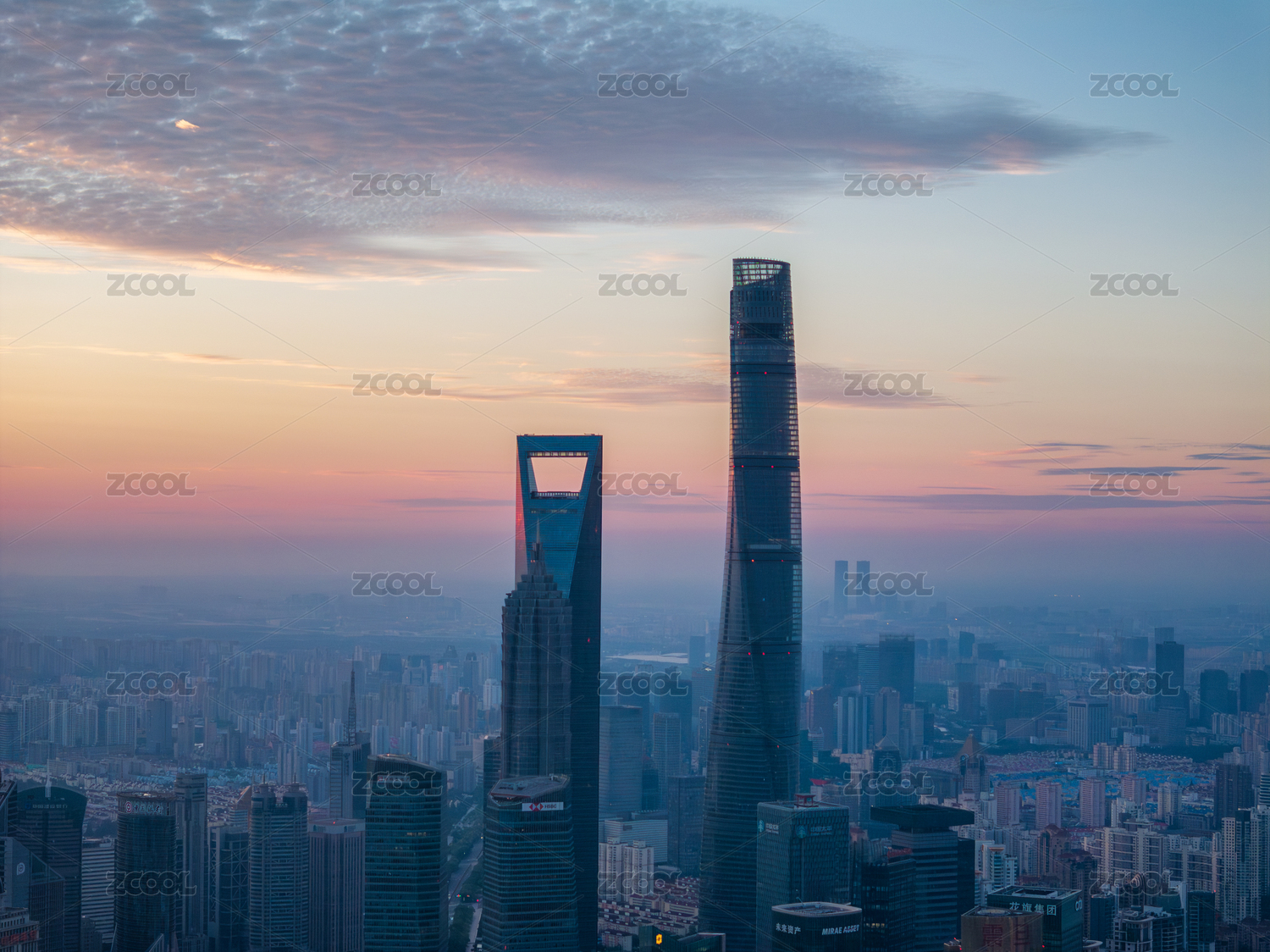 黎明时分上海陆家嘴三件套地标建筑