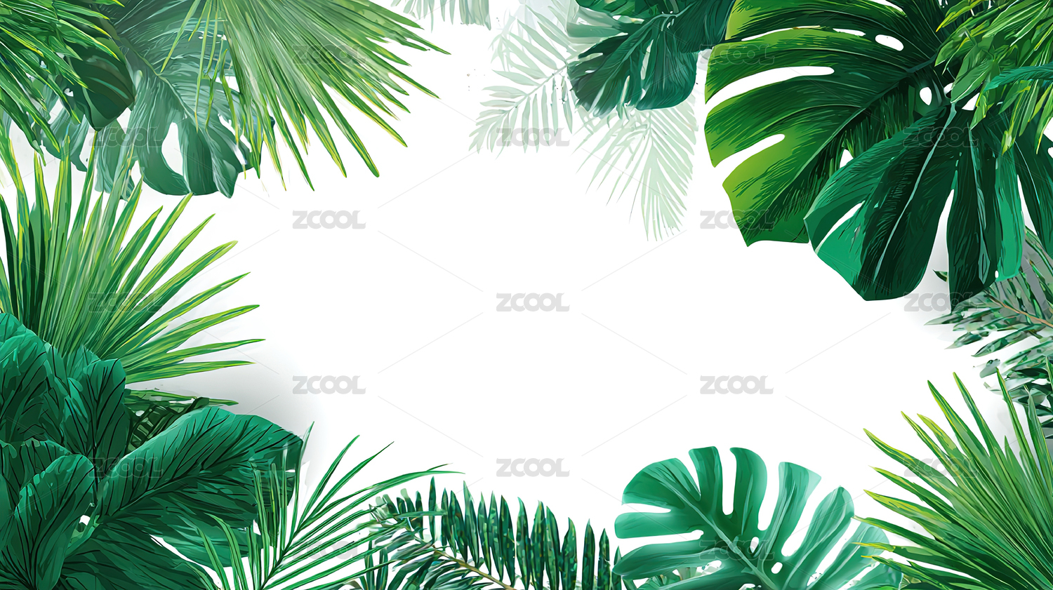 热带植物叶片环绕浅色背景
