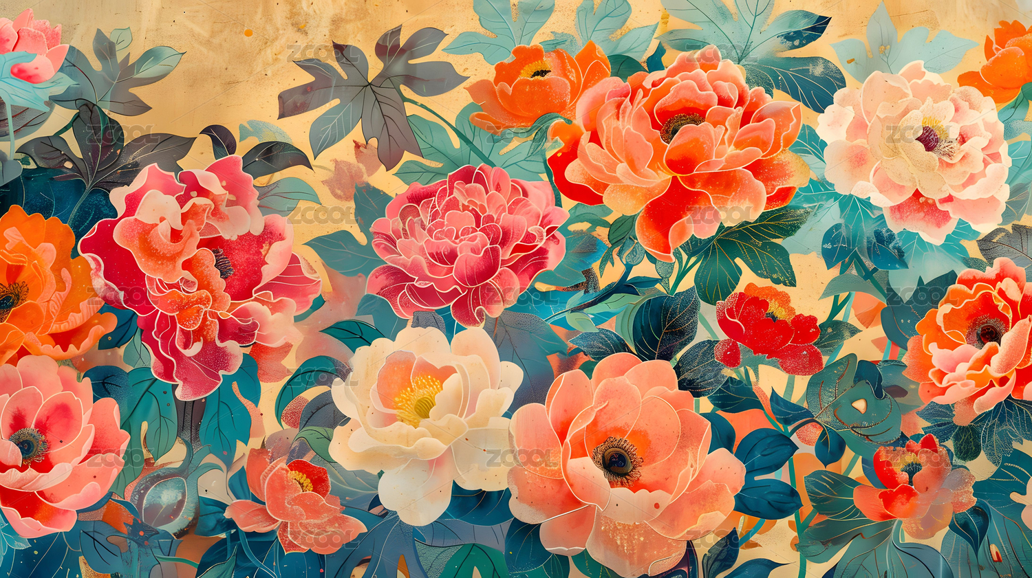 复古,牡丹,花,纹理,抽象,壁纸,海报,背景,植物,花瓣