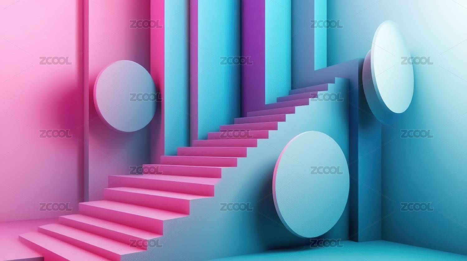 色彩斑斓的阶梯与圆形装饰