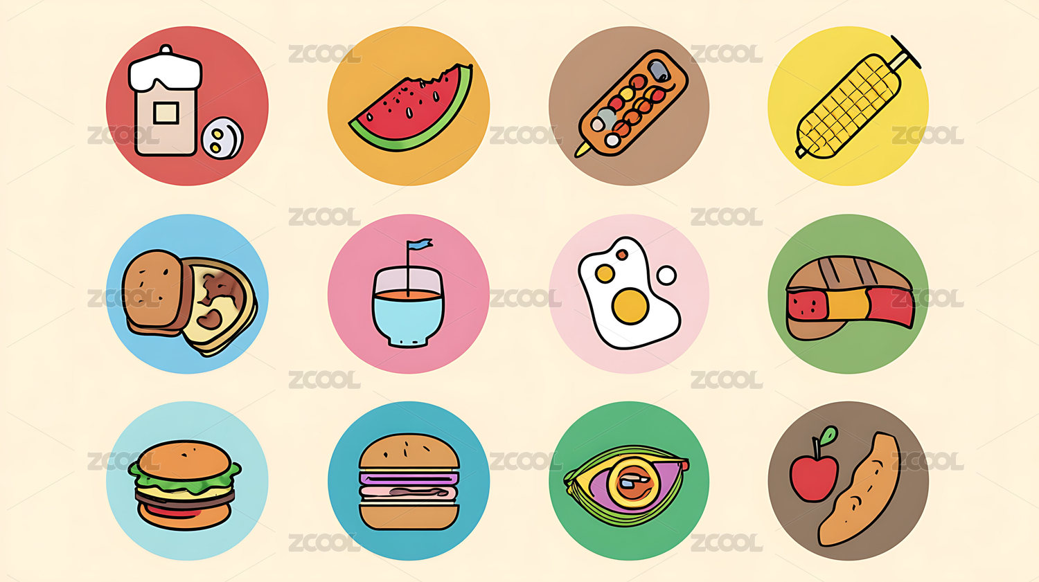 卡通快餐食品图标集合