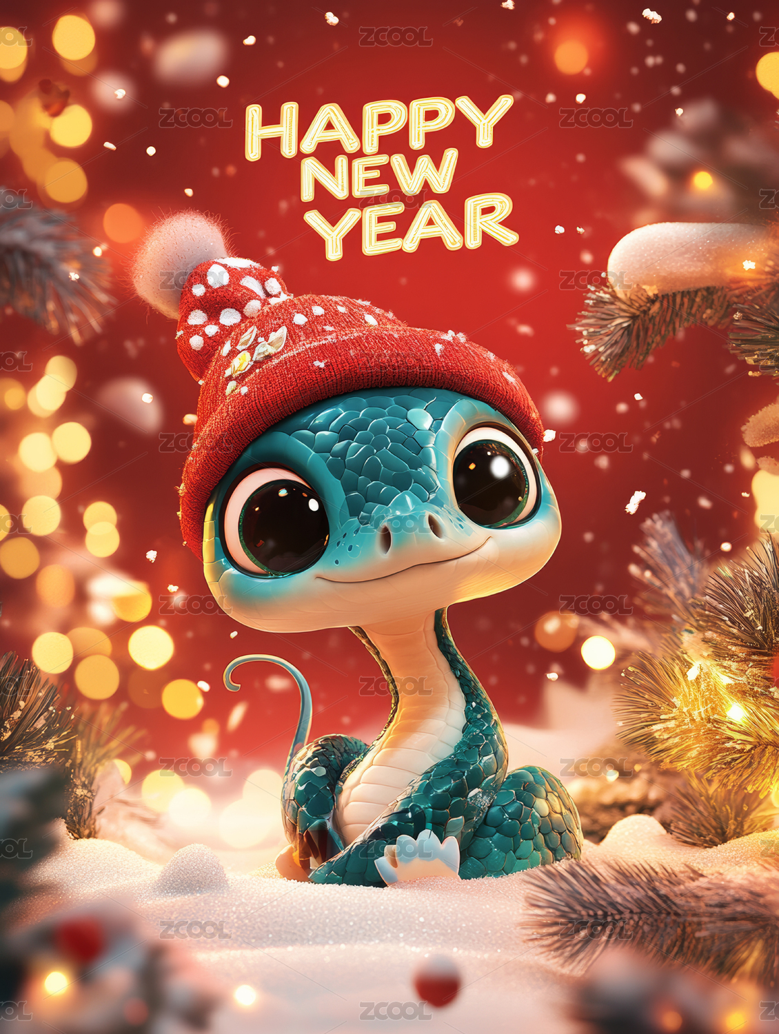 节日风格可爱3D小蛇