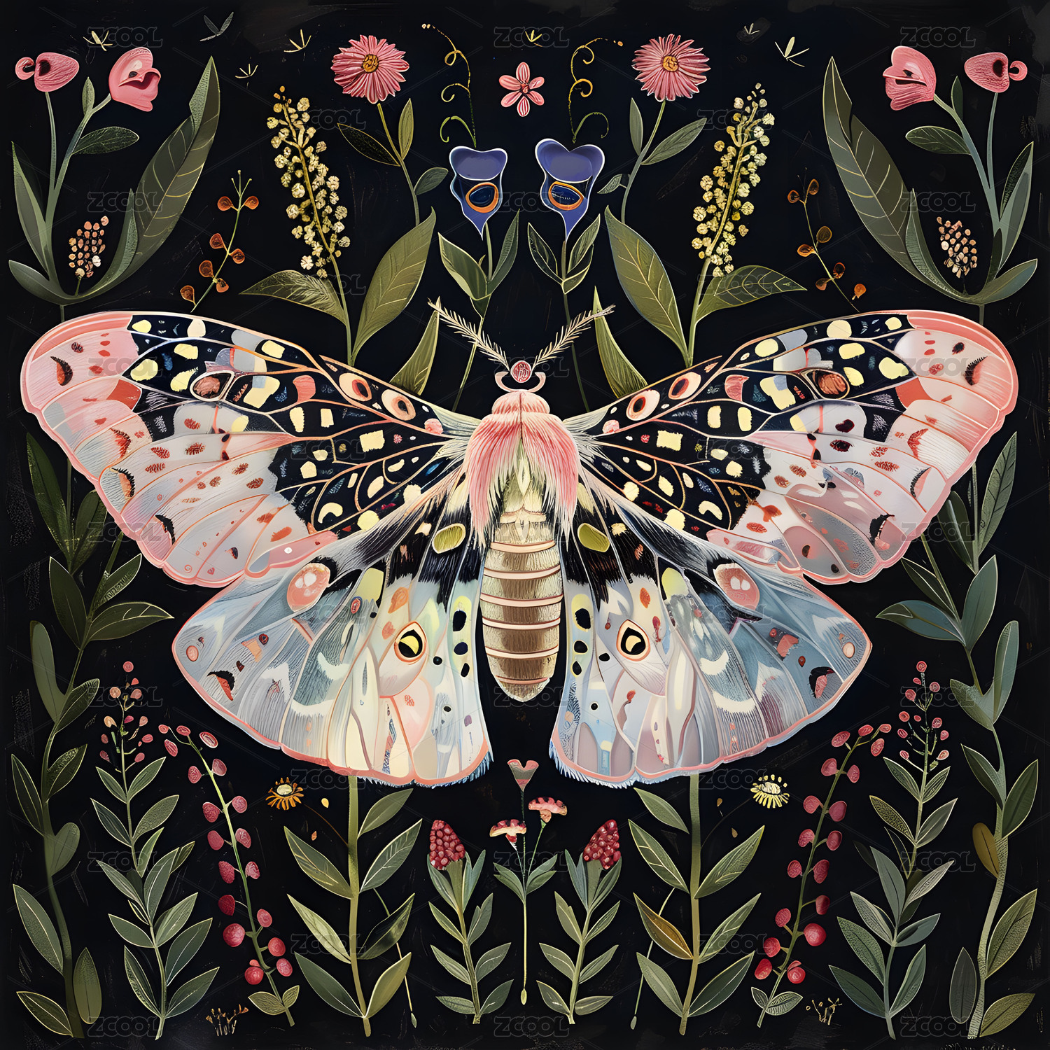 植物与蝴蝶复古花纹