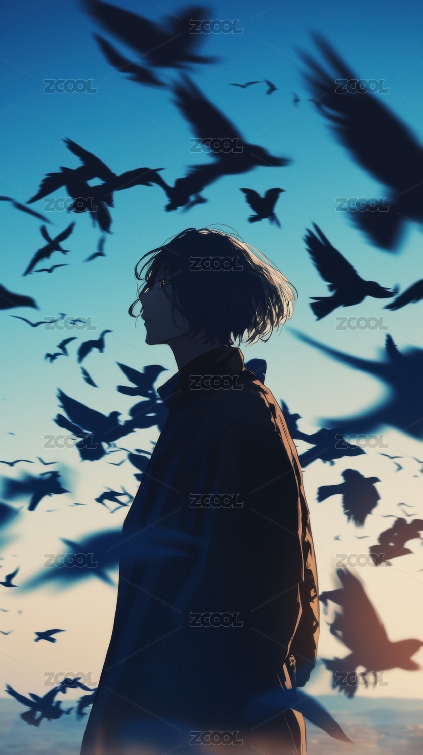 宁静,少年,男孩,人像,帅气,墨水,忧郁
