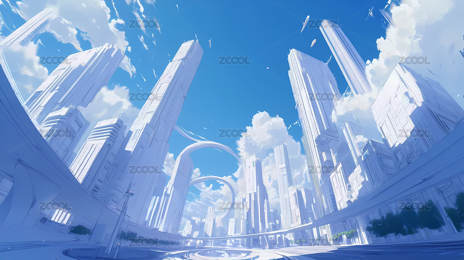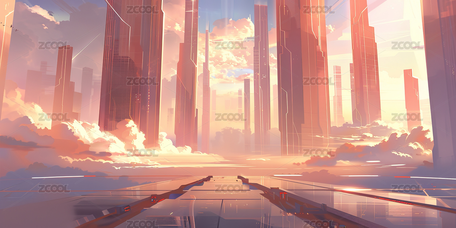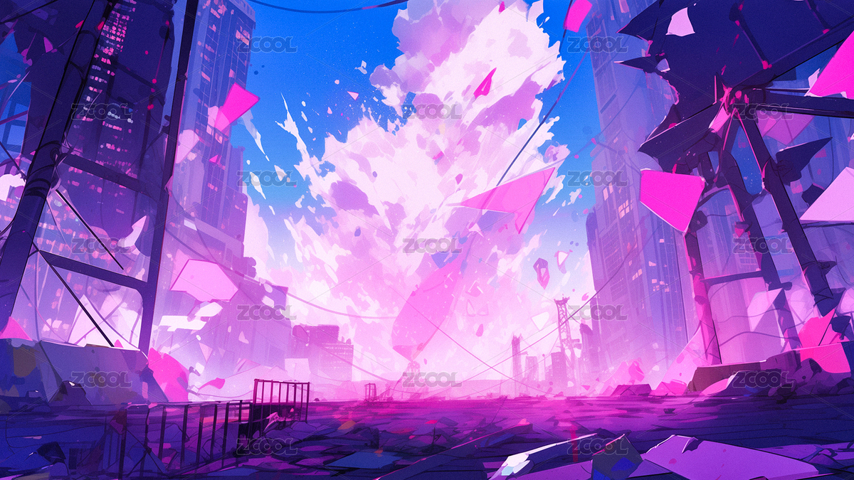 云朵,城市,天空,高楼,粉色调,路面,碎石,残破
