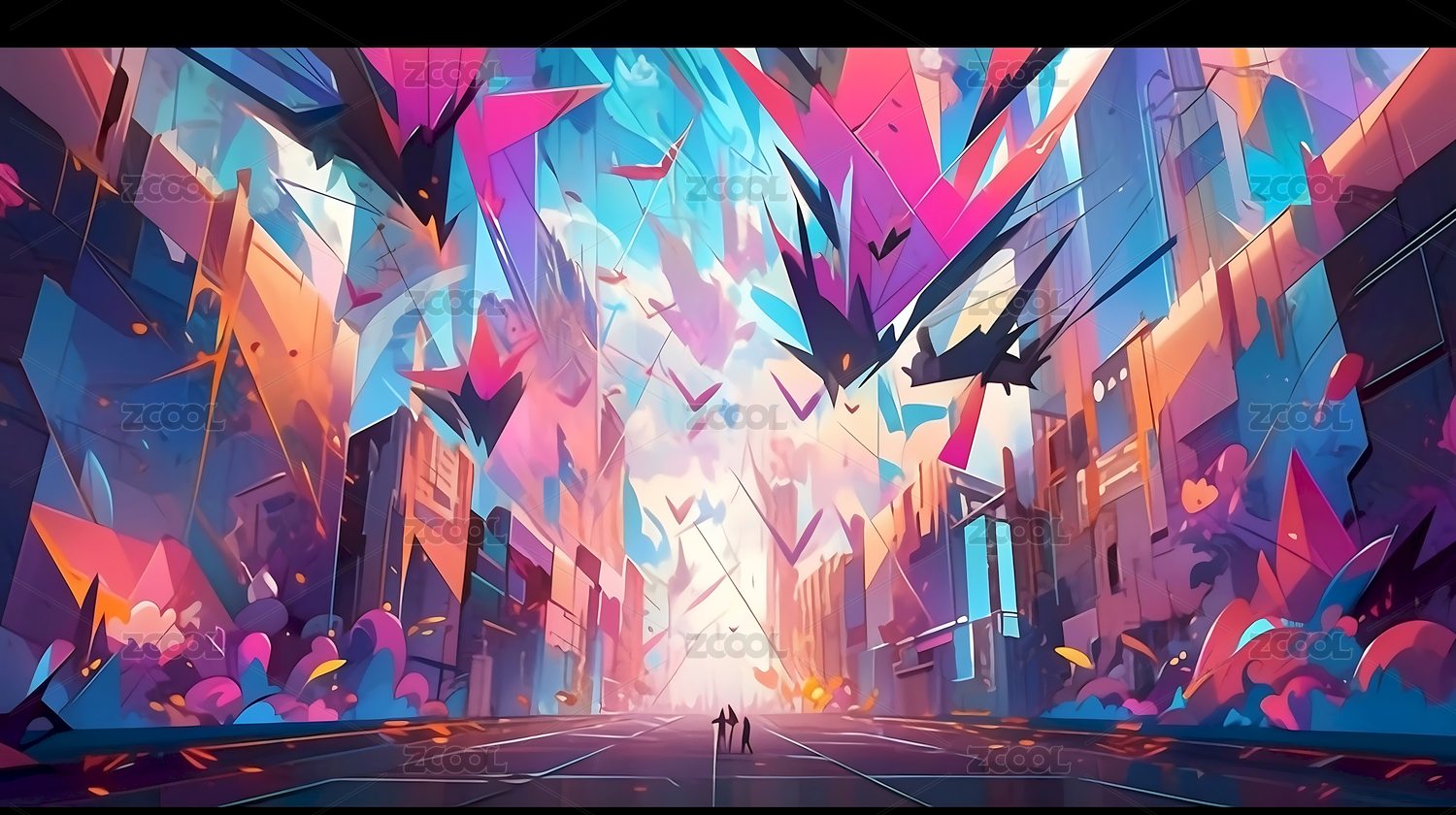 抽象创意涂鸦背景艺术插画酷炫色彩电商海报