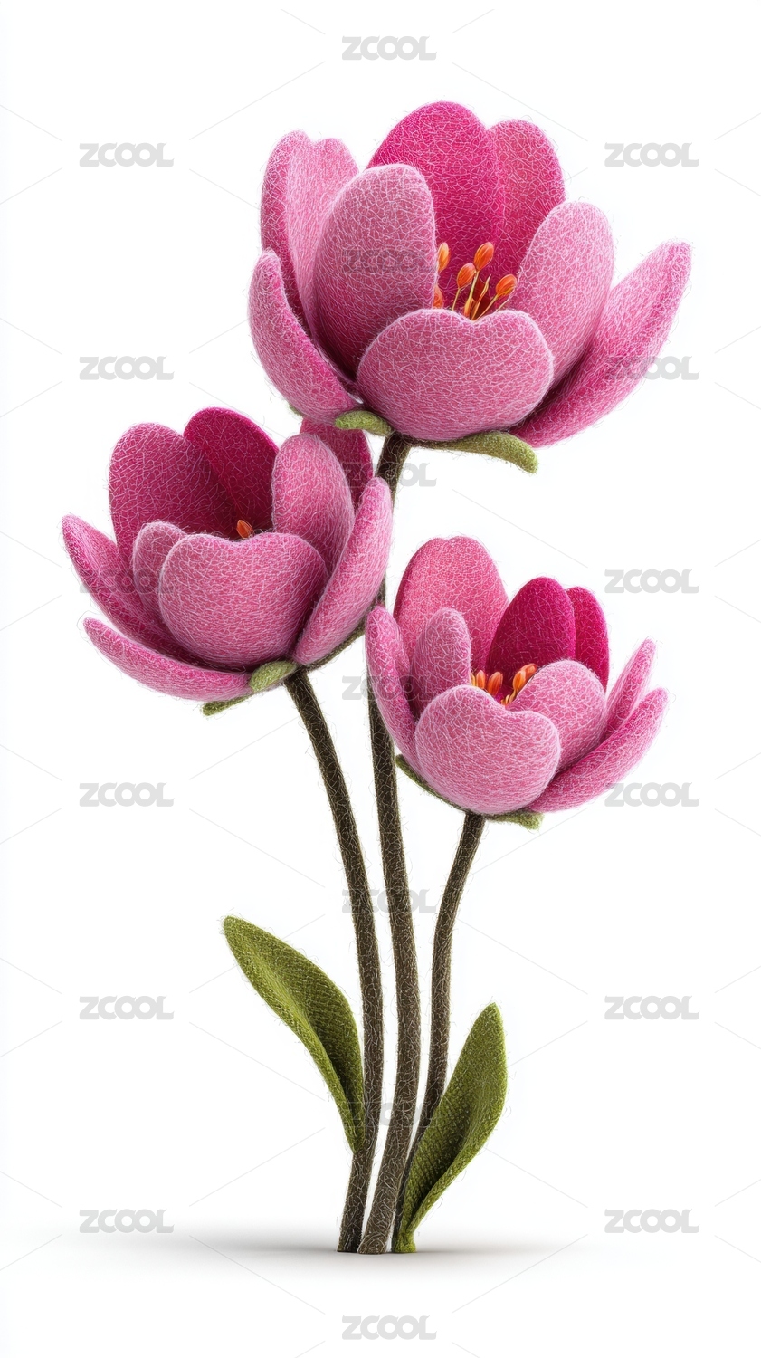 三朵粉色花朵的艺术插画