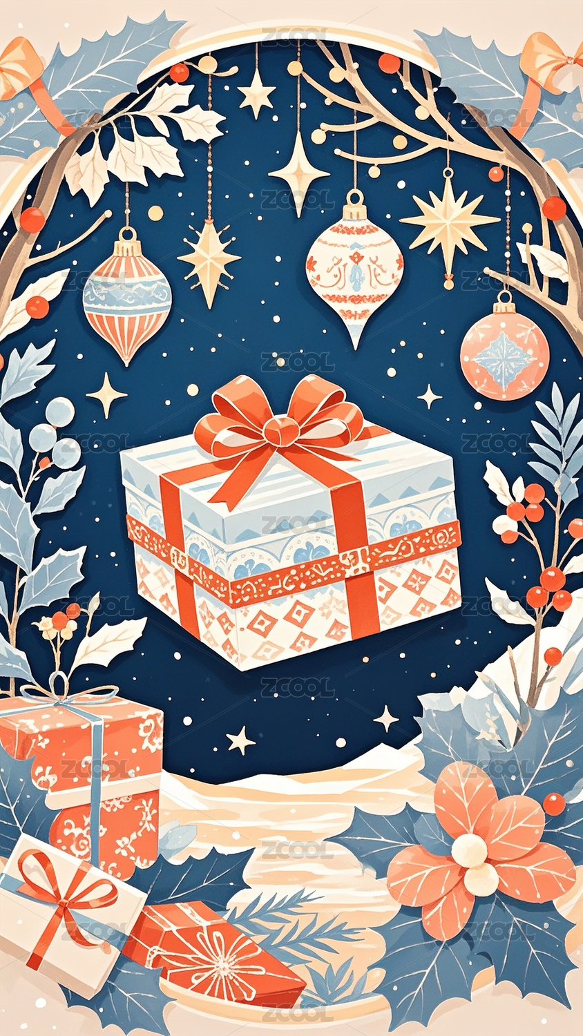 冬季圣诞节平安夜圣诞老人送礼物矢量插画