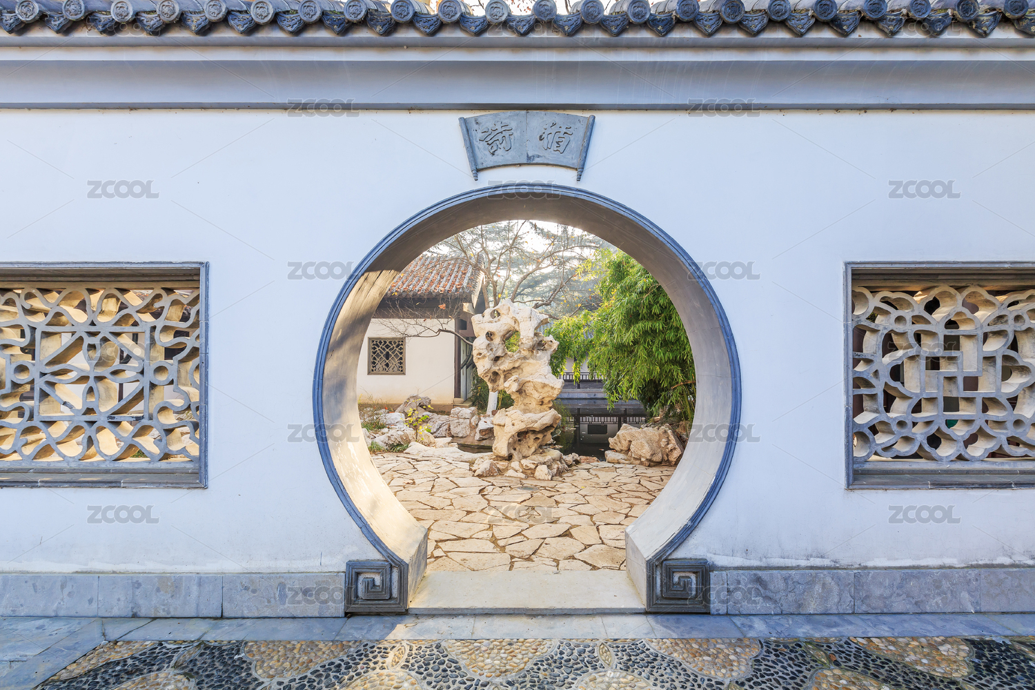 中国江苏省南京市晚清江南名园愚园月亮门景观