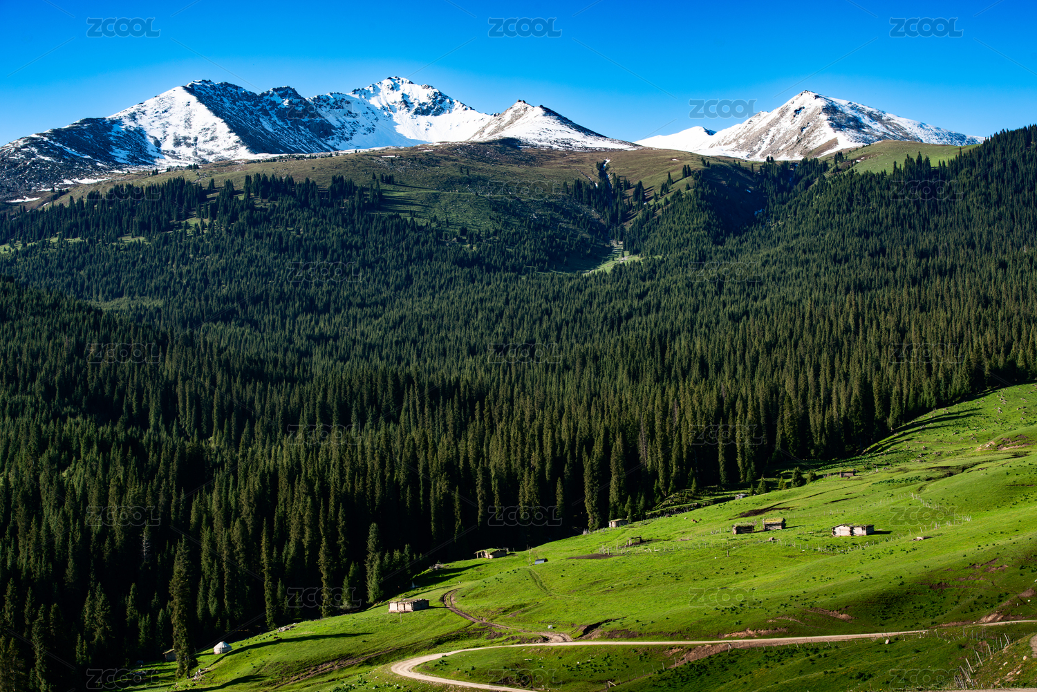 中国新疆伊犁州恰西森林公园草原云杉景观