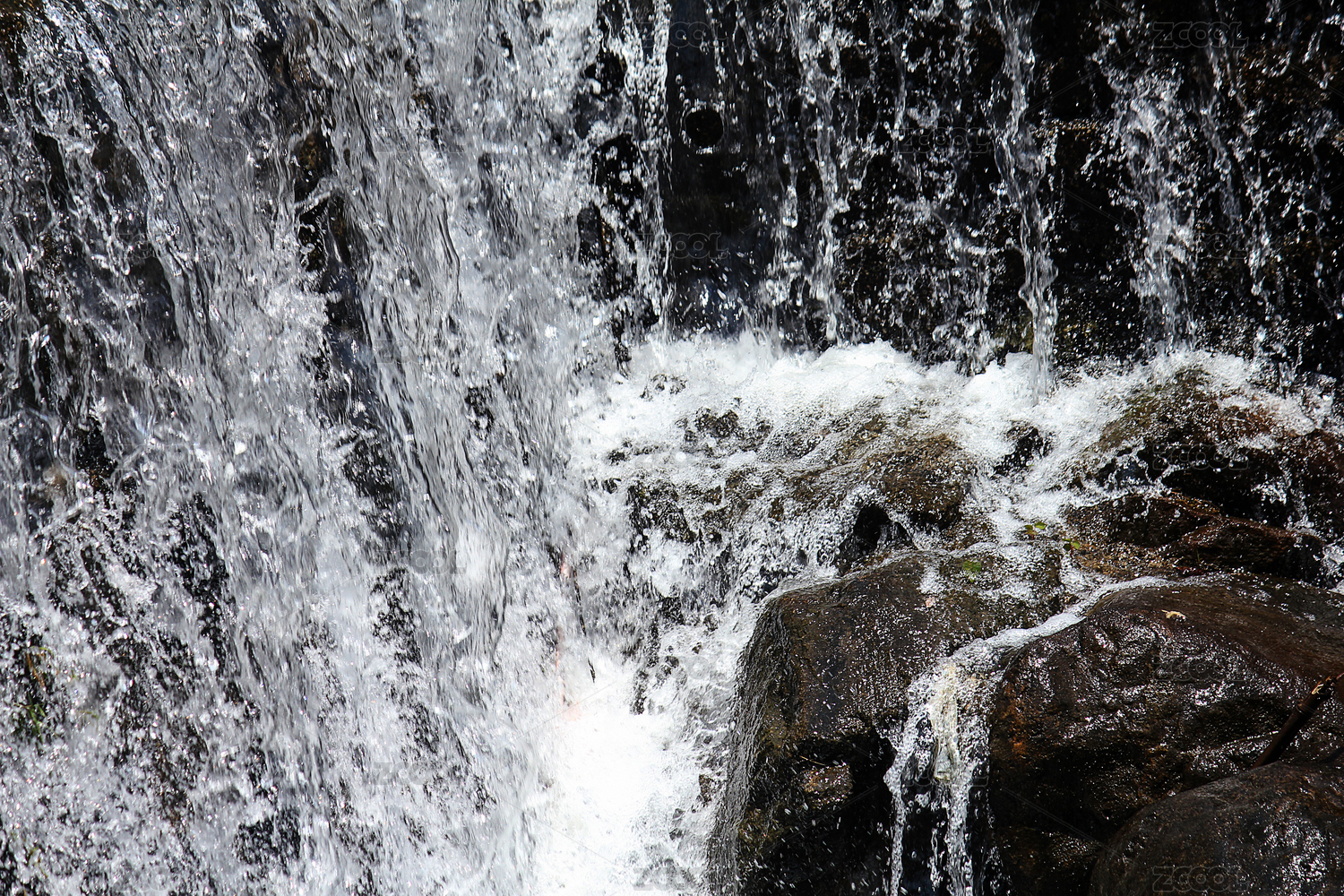 激流拍打岩石溅起的水花