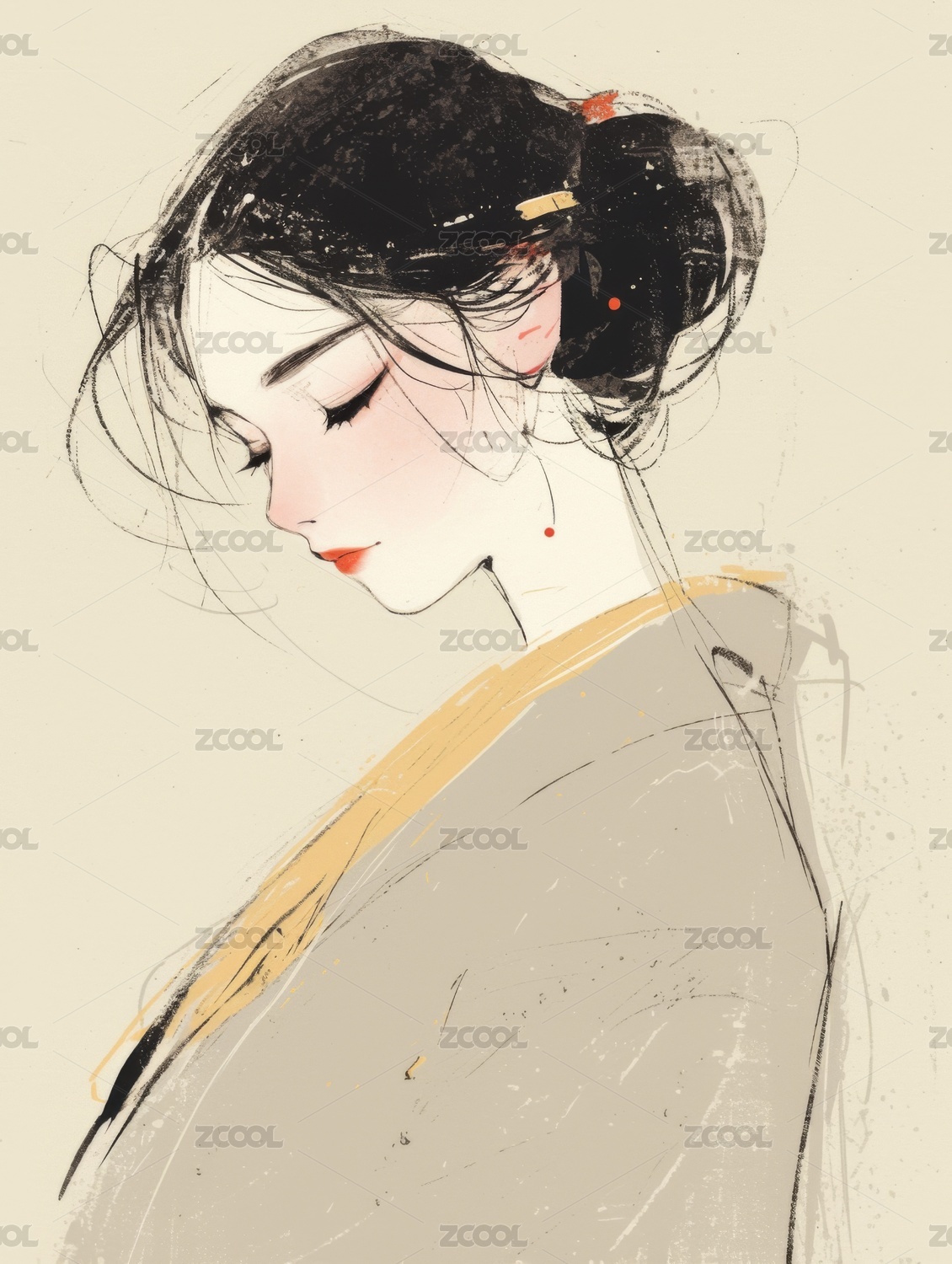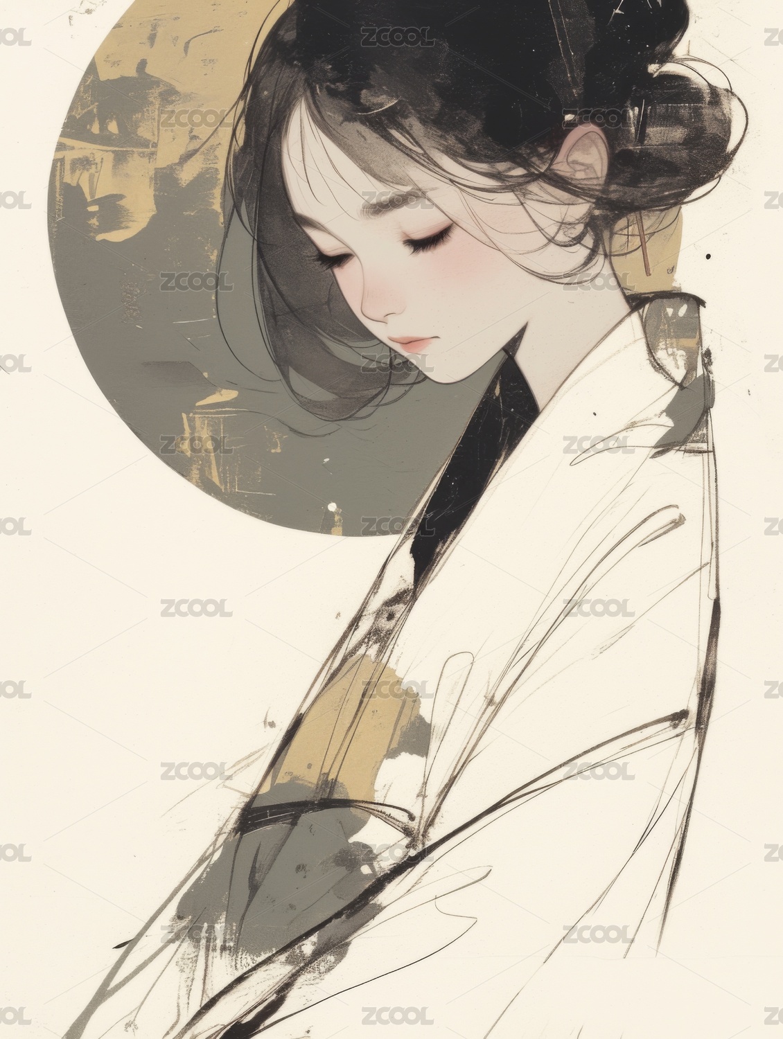 国风新中式古风水墨插画