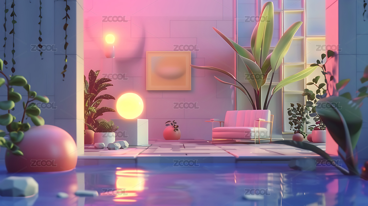 卡通,3d,乐园,梦幻,童话,清新,自然,展台,风景,春天