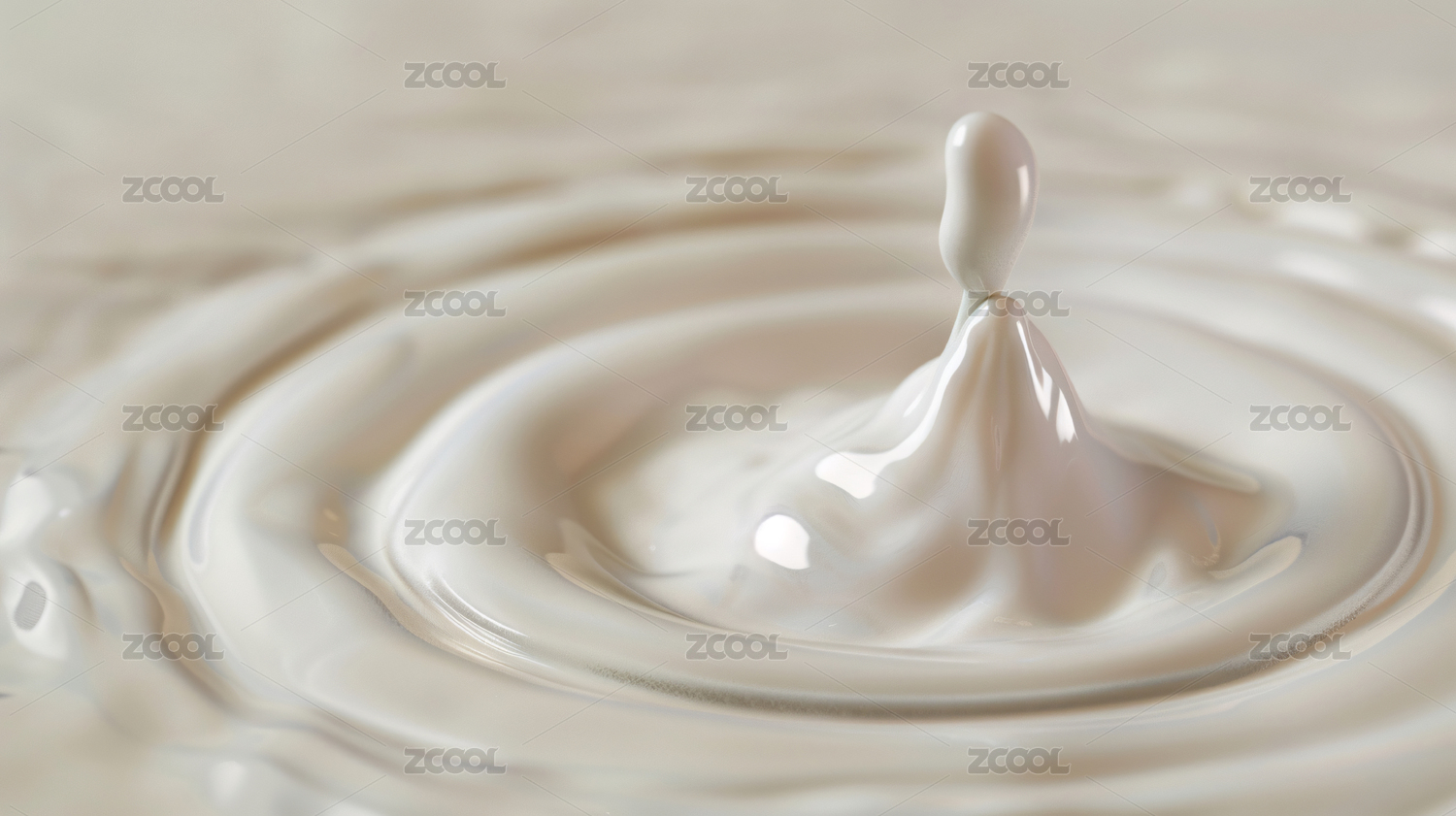 倒牛奶溅起的水珠和波纹,近景,牛奶饮品广