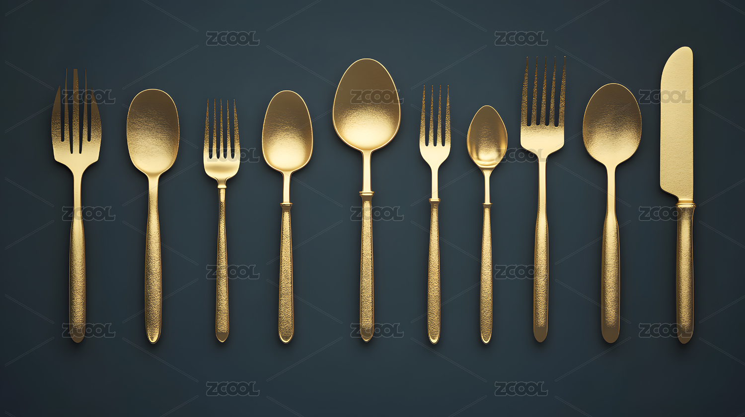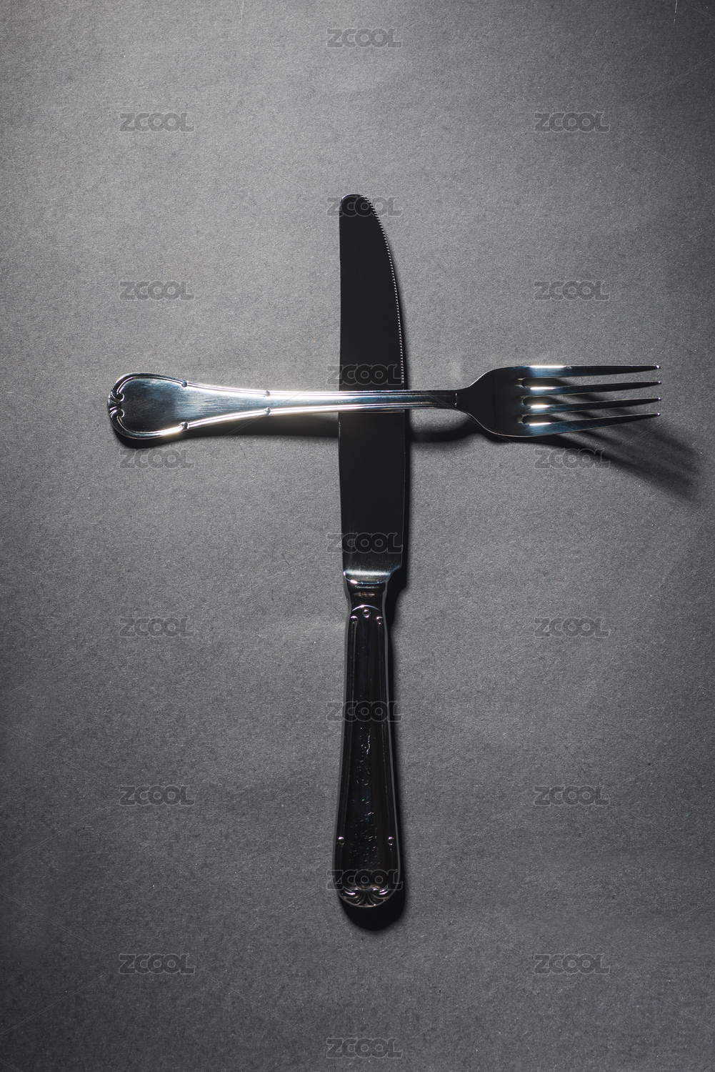放在餐桌上的高档不锈钢西餐具刀叉勺子