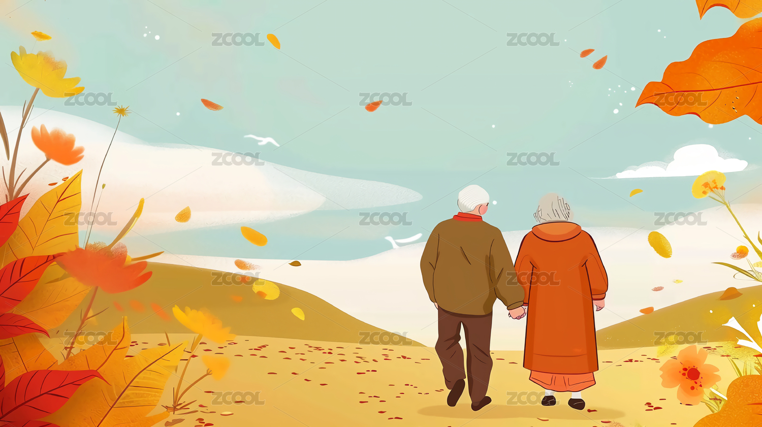 重阳节,背影,背面,老人,人物,男人,女人,夫妻,登高,远足